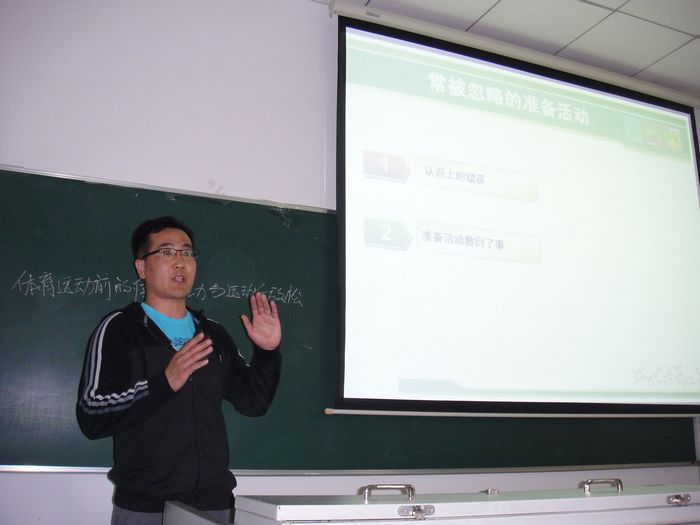 为进一步促进体育教师授课水平,提高教学效果,5月6日下午三点半,体育部在江浦校区综合体育馆三楼报告厅,再次组织了青年教师授课竞赛。本次是在上次授课竞赛基础上,考虑到校青年教师授课竞赛对授课内容并未作硬性规定的实际,为尽可能地发挥教师自身特长和优势而举行的选拔性比赛,五位青年教师自愿报名参加。值得肯定的是:几位本次虽然没有参赛的青年教师,都能自愿参加了今天的教学交流活动,表现出了“虚心学习,取人之长”的态度。几位继续参赛的教师,也认真吸取了上次评委们提出的意见和建议,对课件和教学内容作了认真而精心的准备,授课效果有了很大提高,也证明了“认真的态度是成功的基石”道理。
