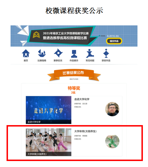 在创新课程的教学模式中,学生强化了对武德思政的学习,传统文化太极拳的魅力得到了更好地传承和弘扬,传统教学的发展方向进一步地拓宽。通过课程的学习与实践五名优秀拔尖学生2021年中国大学生武术套路锦标赛中获得了621铜的好成绩。20217月章璐璐老师的大学体育(太极养生)课程获得校级微课程教学比赛特等奖,还多次获得其他校级和省级的优秀奖项,希望她再接再厉、再创佳绩。