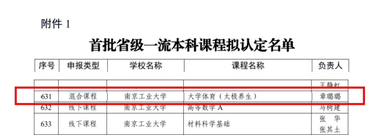 章璐璐老师的大学体育(太极养生)课程获首批省级一流本科课程认定