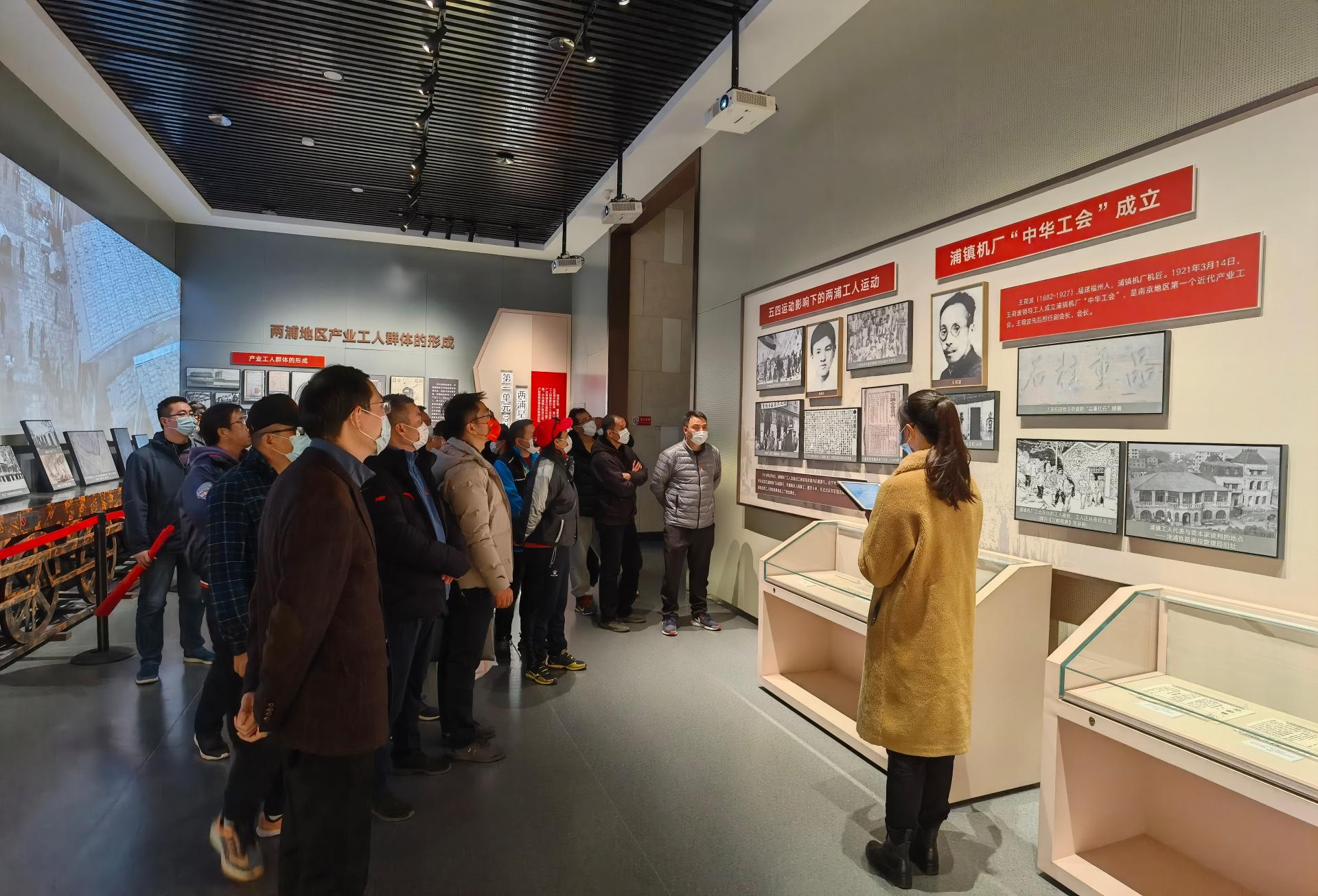 在江北新区红色广场,党员同志们通过参观展览馆的图片、实物展陈和场景重现,了解江北地区红色历史,江北地区的中国共产党历史、中国革命史和中国工人运动史,学习王荷波同志“品重柱石”精神。