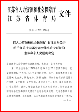 江苏省人力资源和社会保障厅、江苏省体育局奖励在全运会上作出重大贡献的集体和个人名单:
