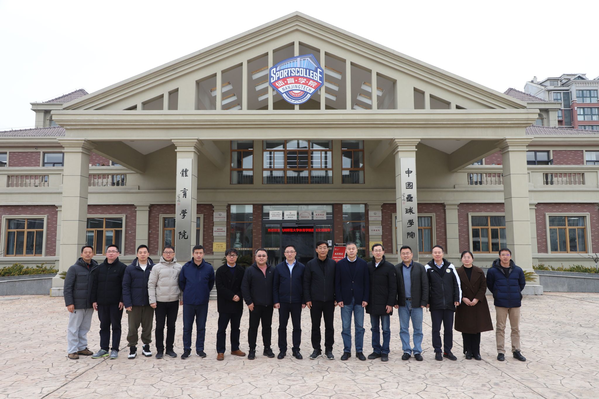 交流会结束后,双方在学院亚青办公楼前合影留念。随后,前往卓逸垒球场、行健体育场和体育馆进行参观。
