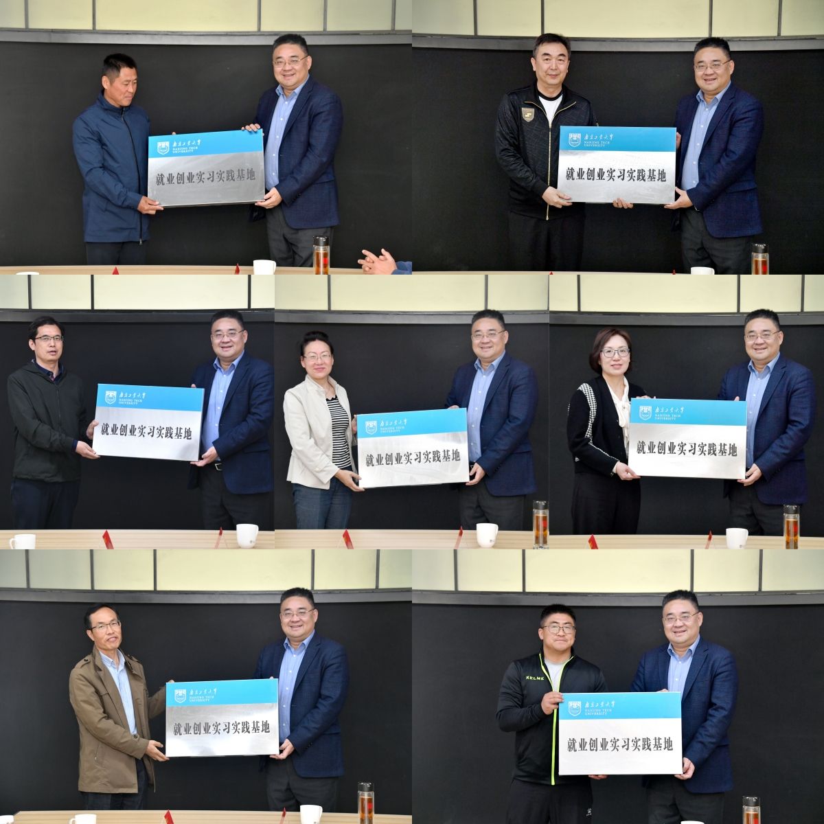 陆伟东副校长为7家合作单位颁授“就业创业实习实践基地”铜牌,张天峰院长与7家合作单位签订了“就业创业实习实践基地建设”协议。