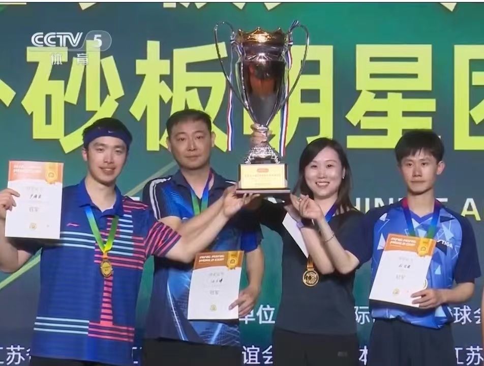 5月14日在南京工程学院结束的第四届砂板世界杯总决赛及中外明星团体对抗赛上,由bv伟德国际1946牵头组建的高校明星队以3:2战胜世界砂板明星队赢得冠军。