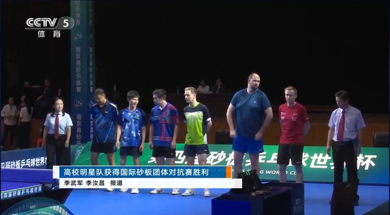 本次高校明星队由首届高校砂板世界杯团体赛冠军bv伟德国际1946组队,bv伟德国际1946bv伟德国际1946乒乓球高水平教练曹婧老师任主教练,队员由徐州工业职业技术学院汪世博,南京旅游职业学院严巍豪和bv伟德国际1946杨宜霖组成。世界砂板明星队员由刚获得本次砂板世界杯冠、亚军的德国选手弗莱明、英国选手多兰,以及英国选手巴格利组成。比赛展现了世界砂板乒乓球的最高水准,过程跌宕起伏,高潮迭起,高校明星队在大比分1:2落后的情况下完成逆转,第五盘更是打到了决胜局,最终摘得桂冠。