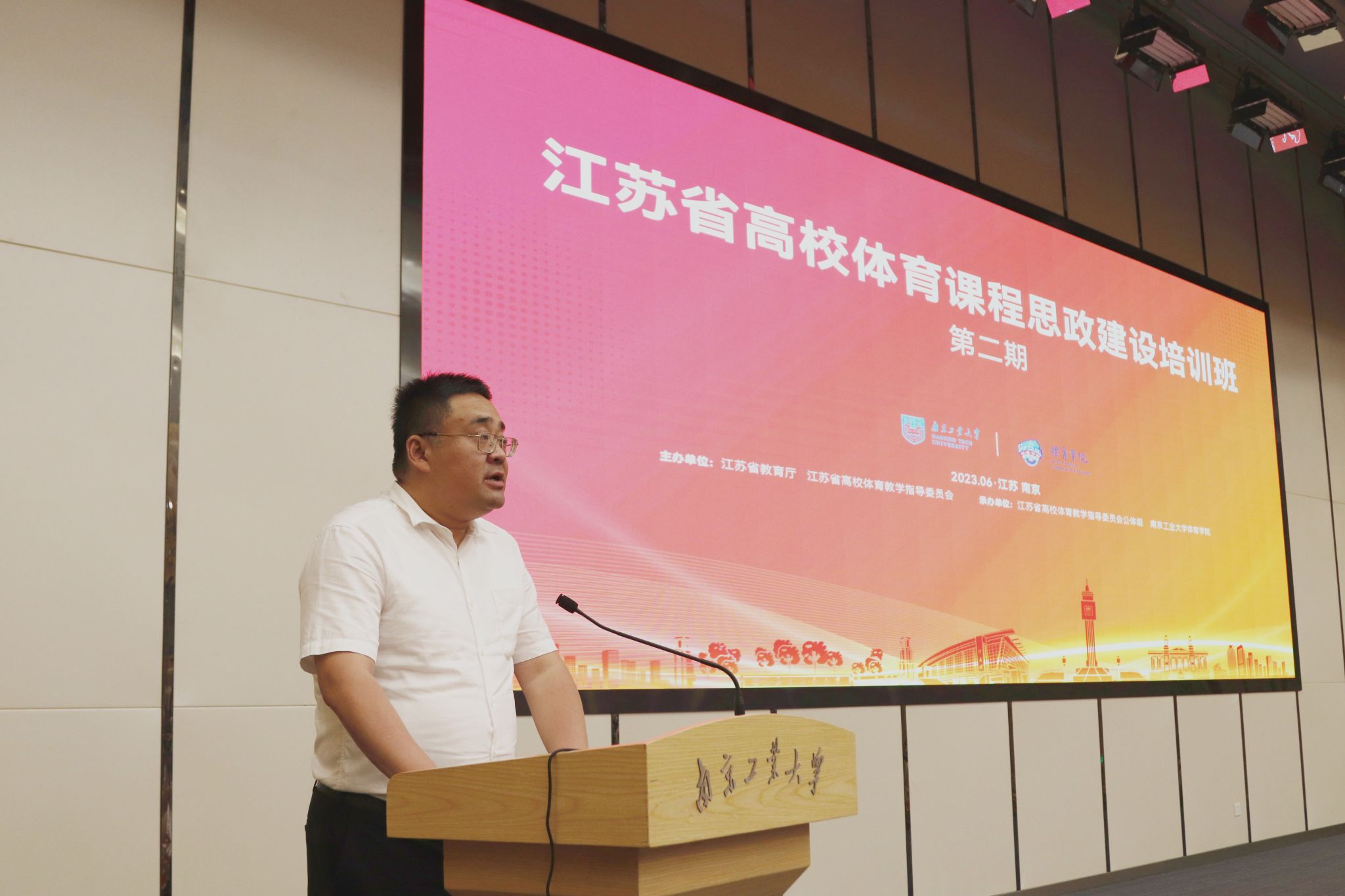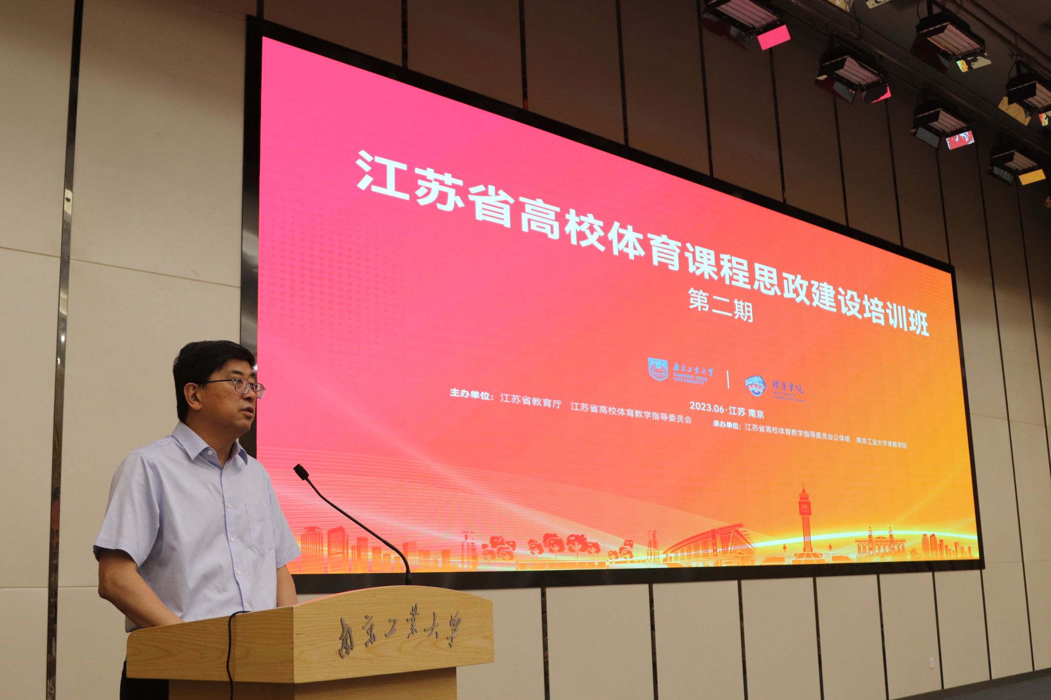 为深入学习贯彻习近平新时代中国特色社会主义思想,落实立德树人根本任务,推进高校体育课程思政建设,6月15日-16日,由江苏省教育厅、江苏省高校体育教学指导委员会主办,江苏省高校体育教学指导委员会公体组和bv伟德国际1946承办的江苏省高校第二期体育课程思政建设培训班在bv伟德国际1946弘毅楼五楼报告厅举办。全省各高校近200名学员参加了培训。南京bv伟德国际1946校长杨国庆、bv伟德国际1946党委常委、副校长陆伟东、江苏省教育厅体卫艺处四级调研员古恺、国家教学名师、上海交通大学讲席教授孙麒麟等领导和嘉宾出席开班仪式。开班仪式由bv伟德国际1946院长张天峰主持。