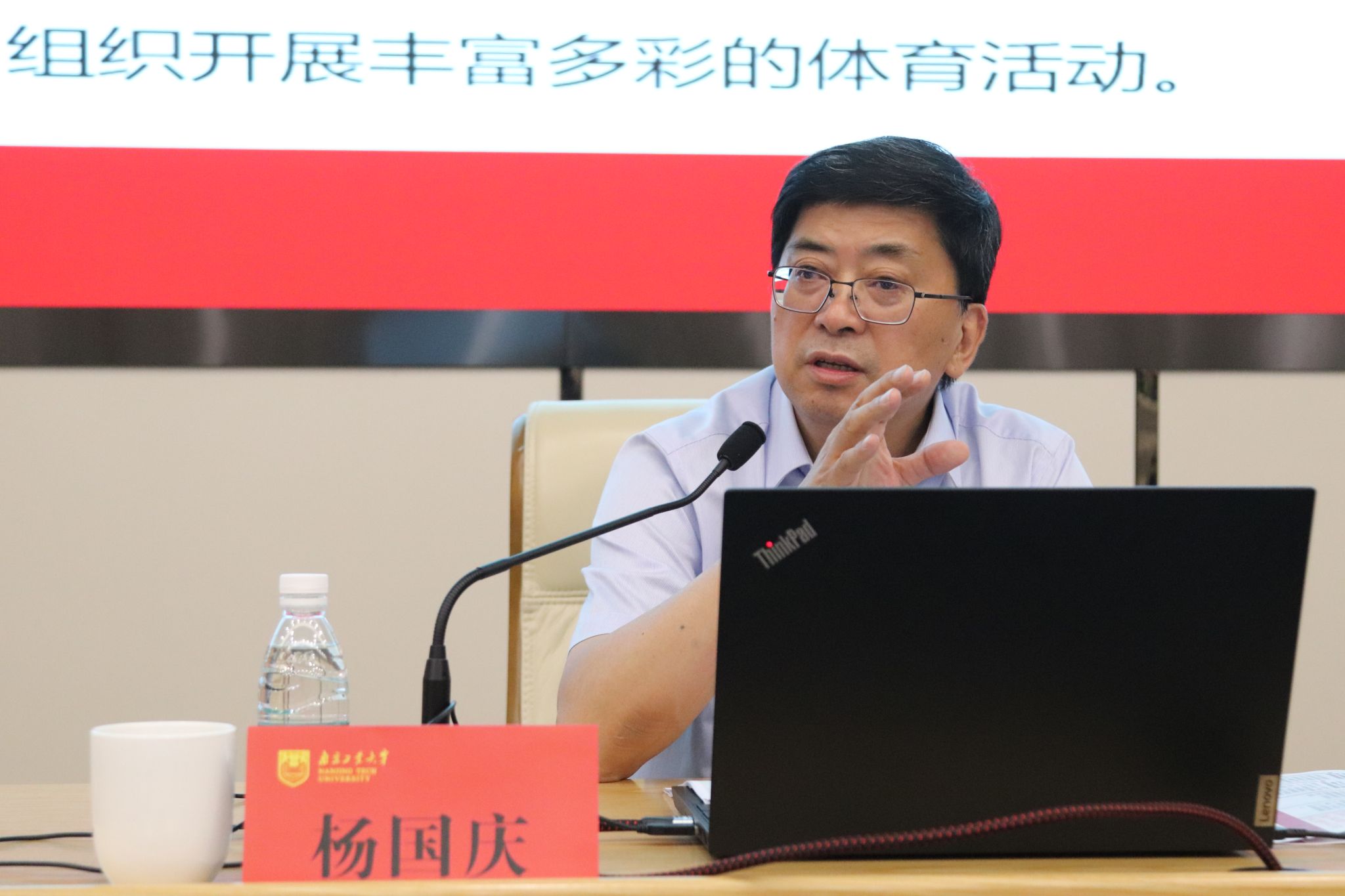 在动员讲话中,杨国庆校长深刻阐释了加强高校体育课程思政建设的重要意义,从精心谋划体育课程思政顶层设计、加强示范课程和精品项目引领、系统推进高校体育课程思政育人新体系等三个方面提出了具体要求,并希望大家通过学习研讨、成果交流、信息互通,有效破解我省高校体育课程思政建设中的理论和实践问题,为深化新时代江苏省高校体育改革发展贡献智慧和力量。