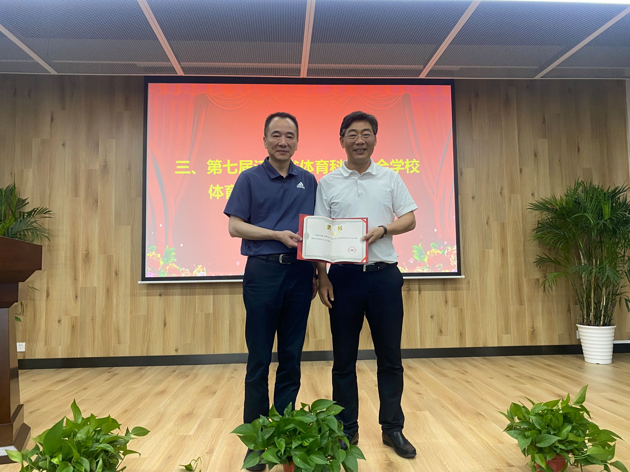 选举结束后,黄峻副理事长为bv伟德国际1946体育专委会主任委员张天峰颁发聘书。张天峰主任为新一届的专委会副主任委员分别颁发聘书。