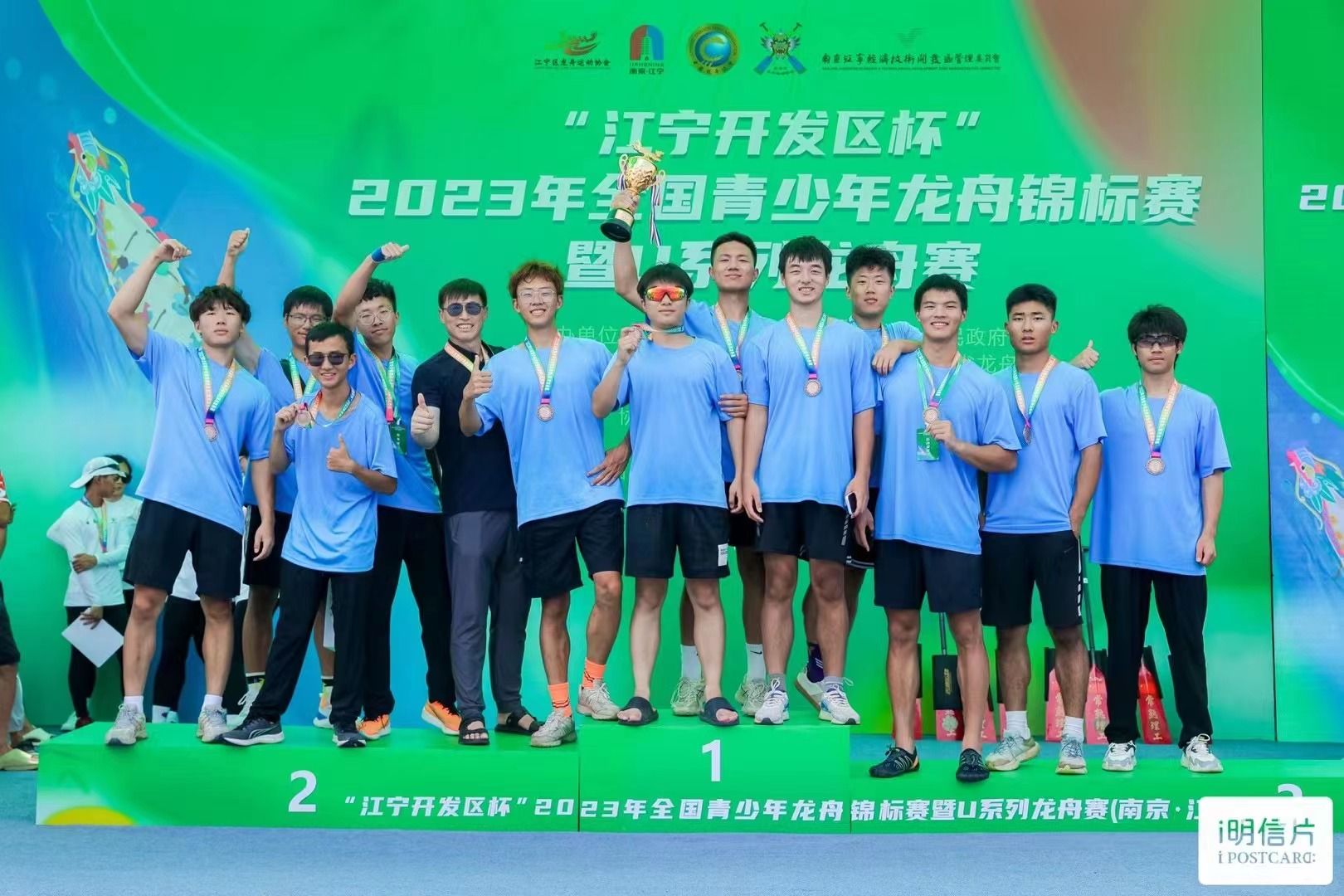 818,全国青少年龙舟锦标赛暨U系列龙舟赛于江苏省南京市江宁开发区九龙湖公园水域隆重开幕,本届赛事由中国龙舟协会、南京市江宁区人民政府主办。本次龙舟赛设5个组别,共计39支队伍,运动员和裁判组总计近750人。bv伟德国际1946龙舟队由bv伟德国际1946陈军副院长担任领队,教练员茆登华率领着12名运动员参赛。