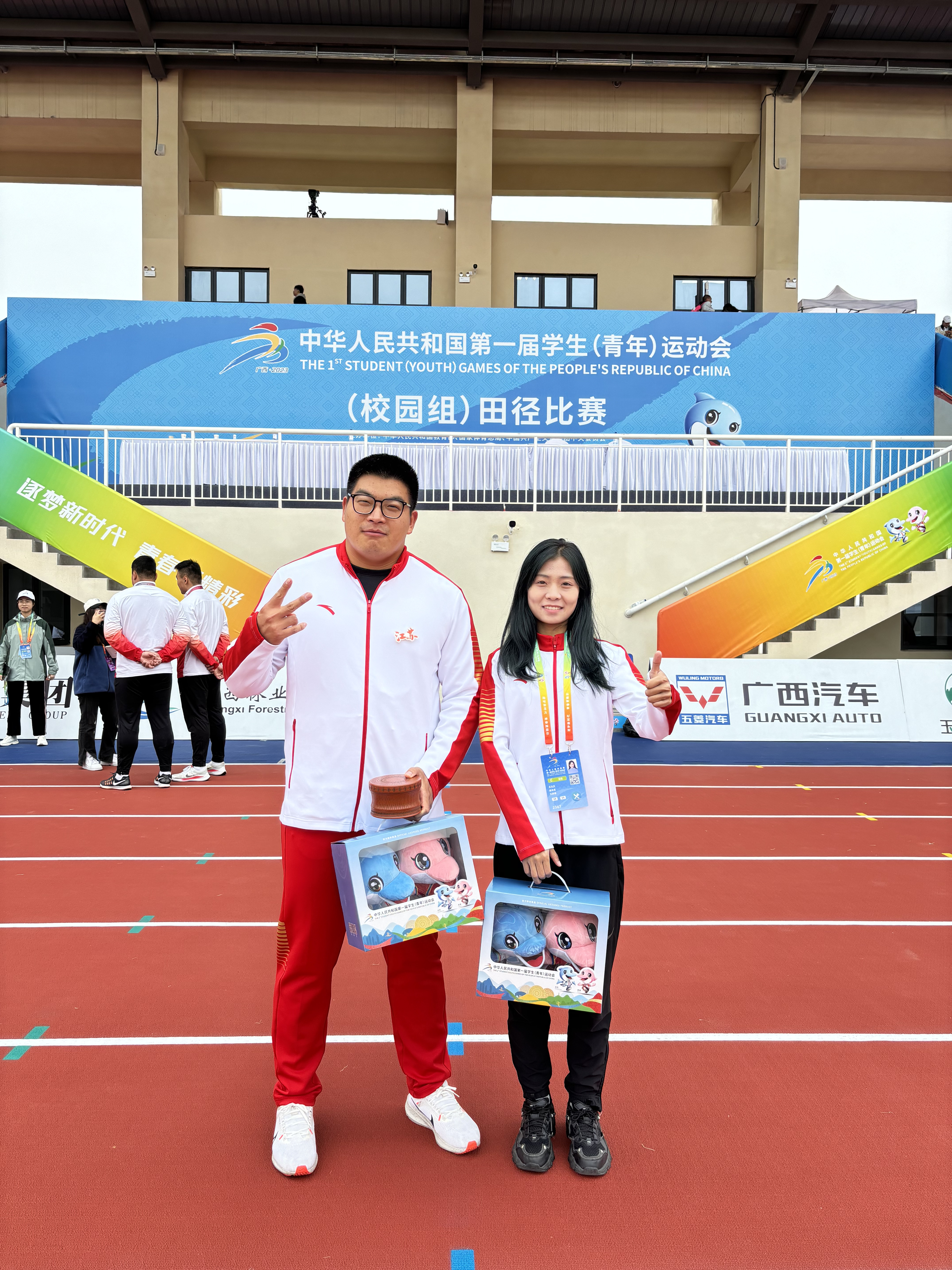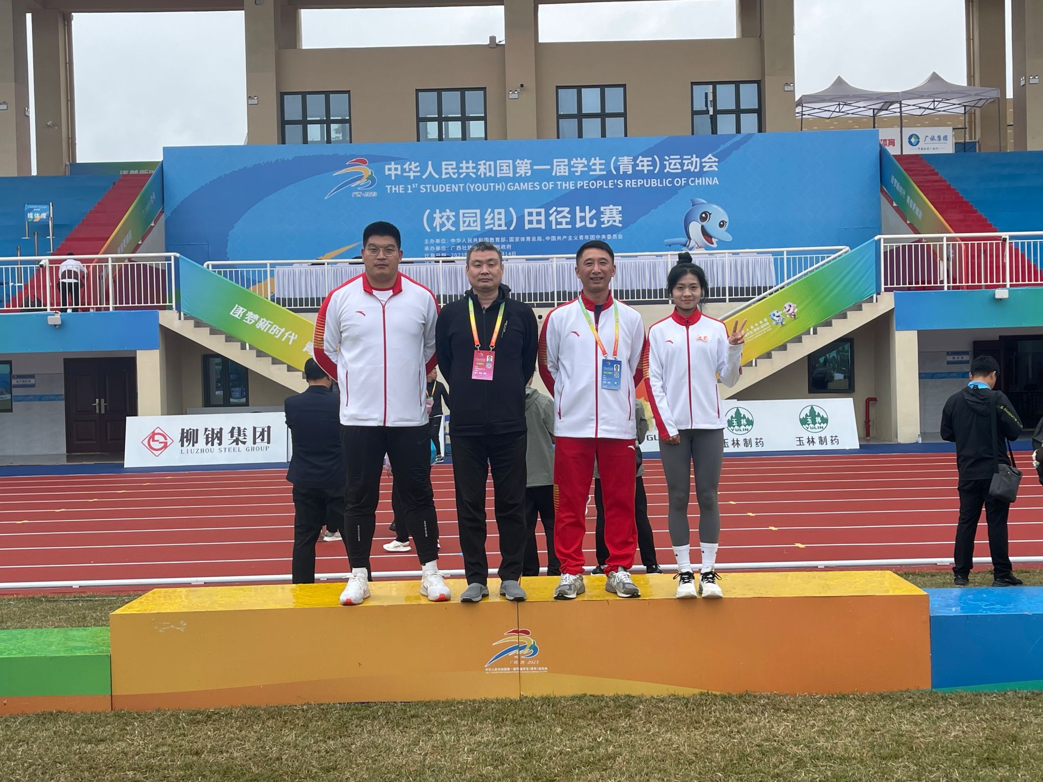第一届全国学生(青年)运动会校园组田径比赛于118日在广西南宁市体育运动bv伟德国际1946五合校区主田径场拉开帷幕。bv伟德国际1946於鹏、李海兵教练和孔景、王文文同学代表江苏队出征,两名运动员克服伤病,角逐赛场,发扬风格,迎难而上,最终孔景同学获得第一届全国学青会大学男子铁饼甲组季军,王文文同学获得大学女子甲组4 X100米接力比赛第四名。bv伟德国际1946院长张天峰亲临现场指导并为运动员们加油鼓劲。