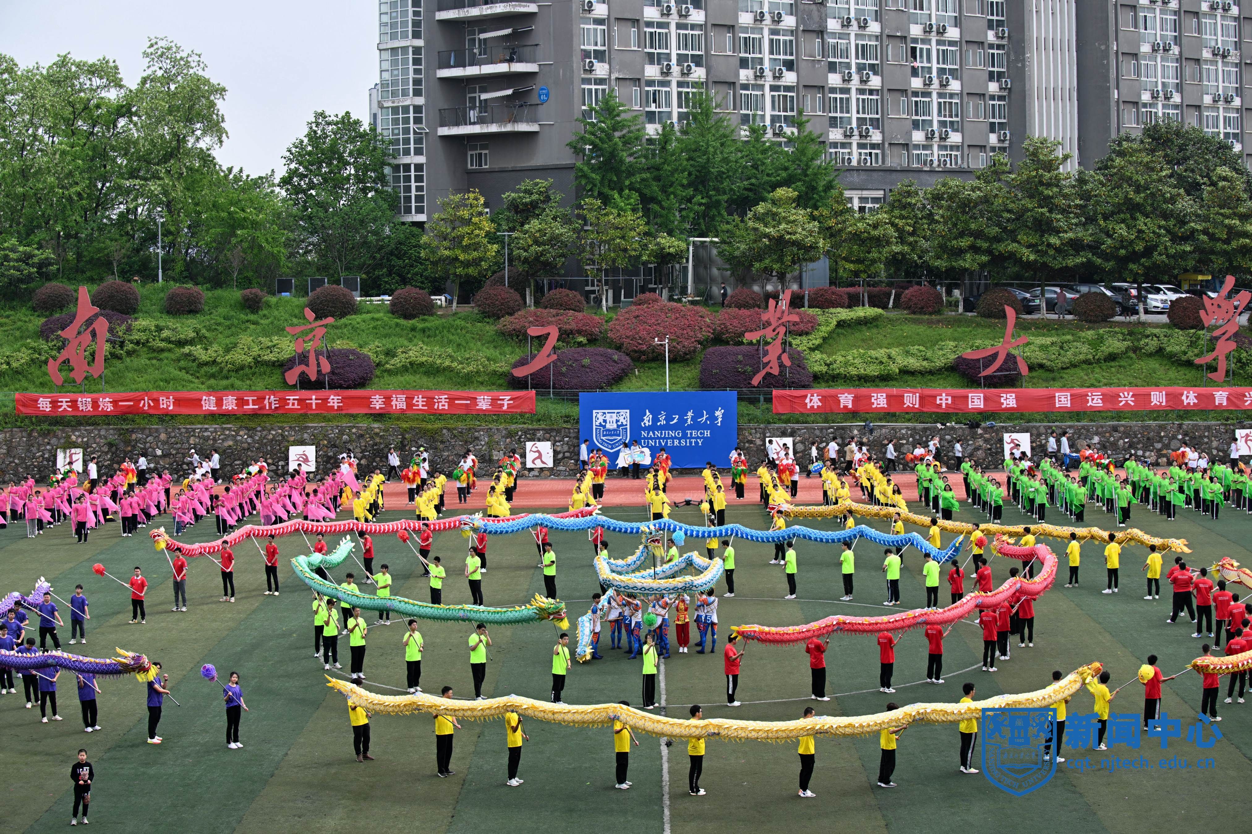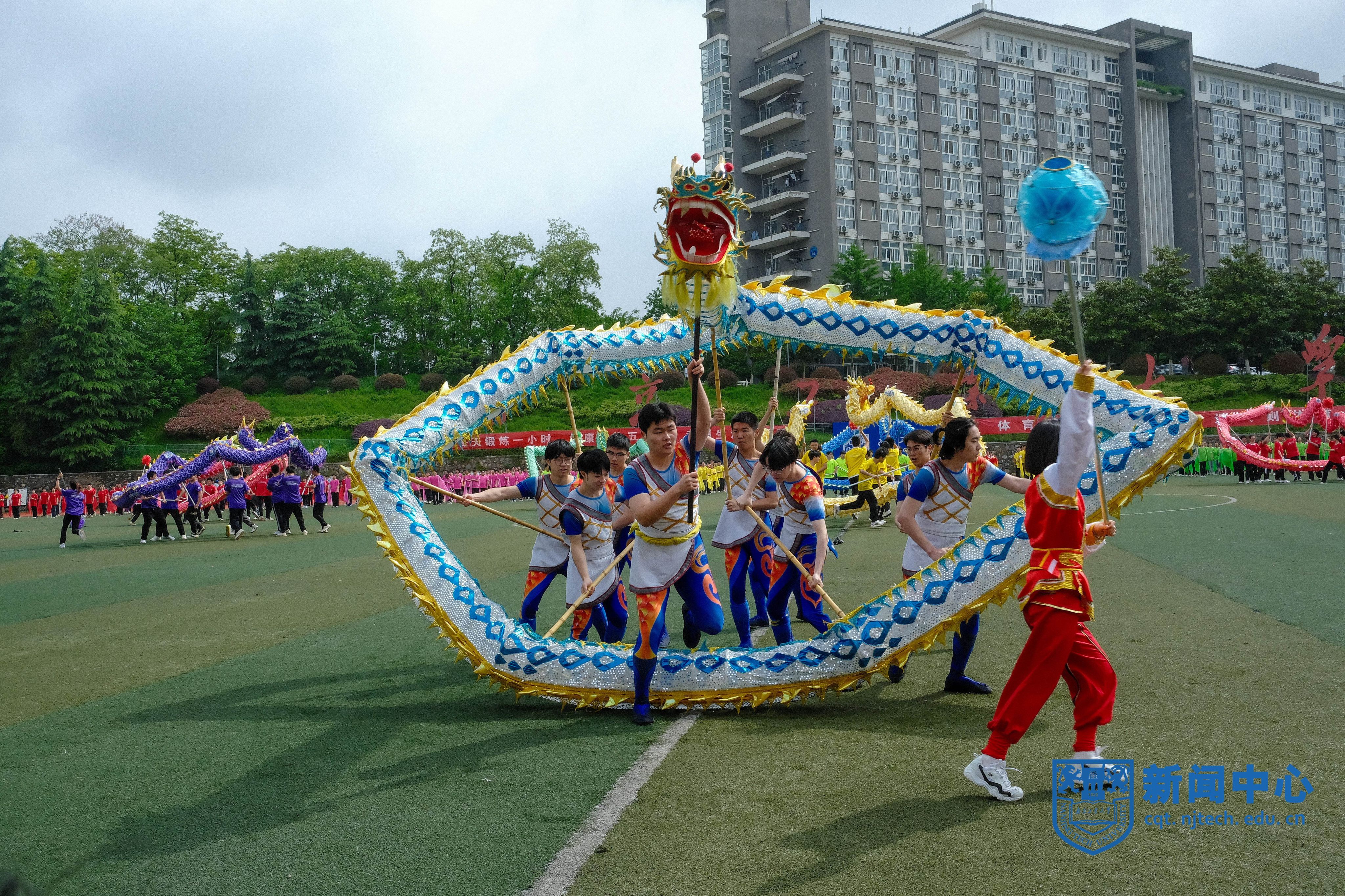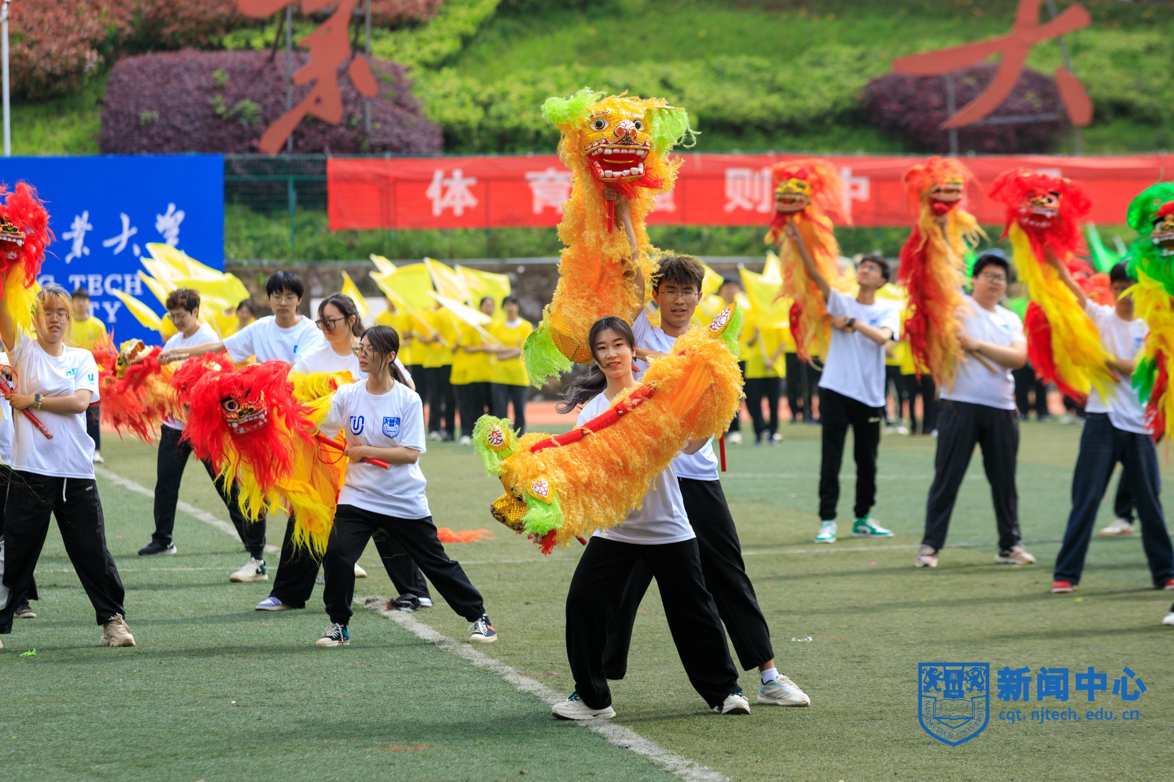 运动员退场后,进行了《弘扬中华体育 共筑健康中国》文体表演。近千名师生以舞龙舞狮、江浦手狮、旗操、太极拳、秧歌舞等多种体育展演形式,展现了全校师生团结一致、奋发进取的精神面貌。