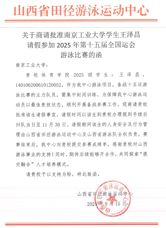 学子们 “赛场学业两不误” 的底气,源于bv伟德国际1946成熟的体教融合体系。早在 2001 年,南工大创新 “体教融合 省队校办” 模式,为女垒队员开设专属班级、实行弹性学制。如今这一模式的相关经验已覆盖足球、游泳等多个项目:针对参赛学生,学院组建专项教学组,通过线上课程、赛后补课保障学业进度;徐州市体育局、山西省田径游泳运动中心提交的表现鉴定,更成为综合素质评价的重要依据,实现 “教赛结合” 的闭环管理。