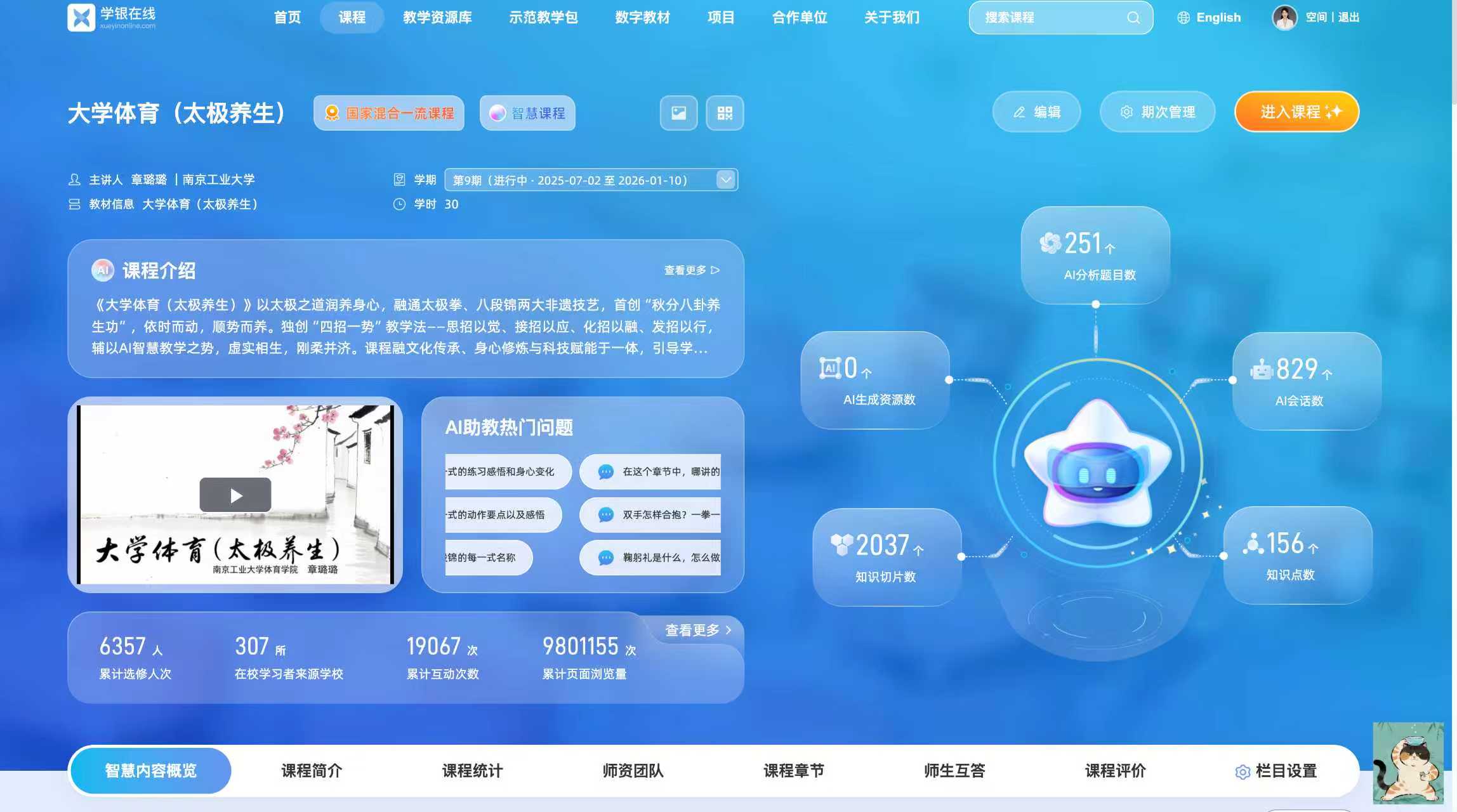 课程紧扣“健康中国”战略,以提升学生身心素养为根本,将传统太极养生、现代健康科学与数智教学手段有机融合,构建“可感、可练、可传”的体育育人新范式。课程依托“虚实相融、五育并进”核心理念,深挖太极养生的哲学内涵与育人价值,创新构建“线上智能导学 + 线下沉浸习练”深度融合的混合式教学模式,做到“练有标准、学有路径、评有依据”。