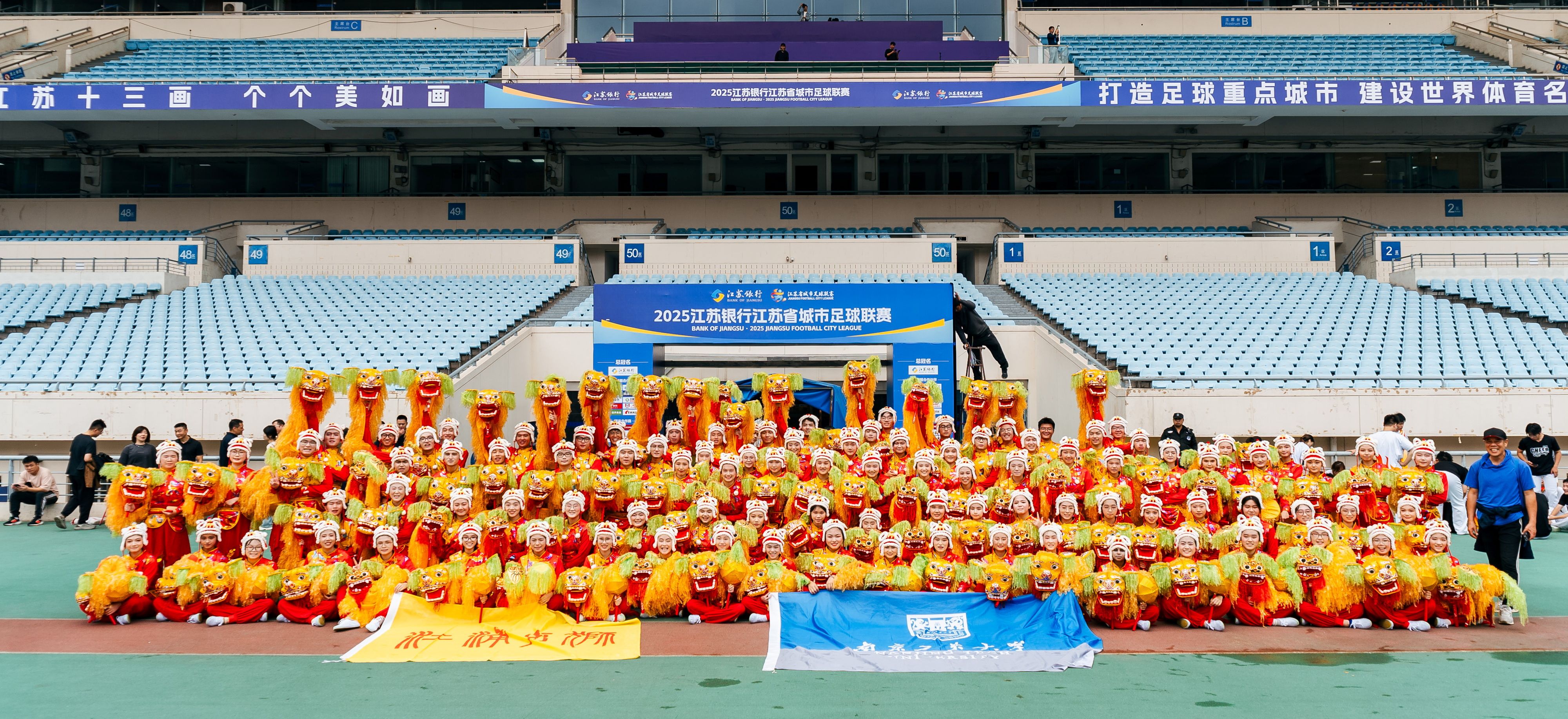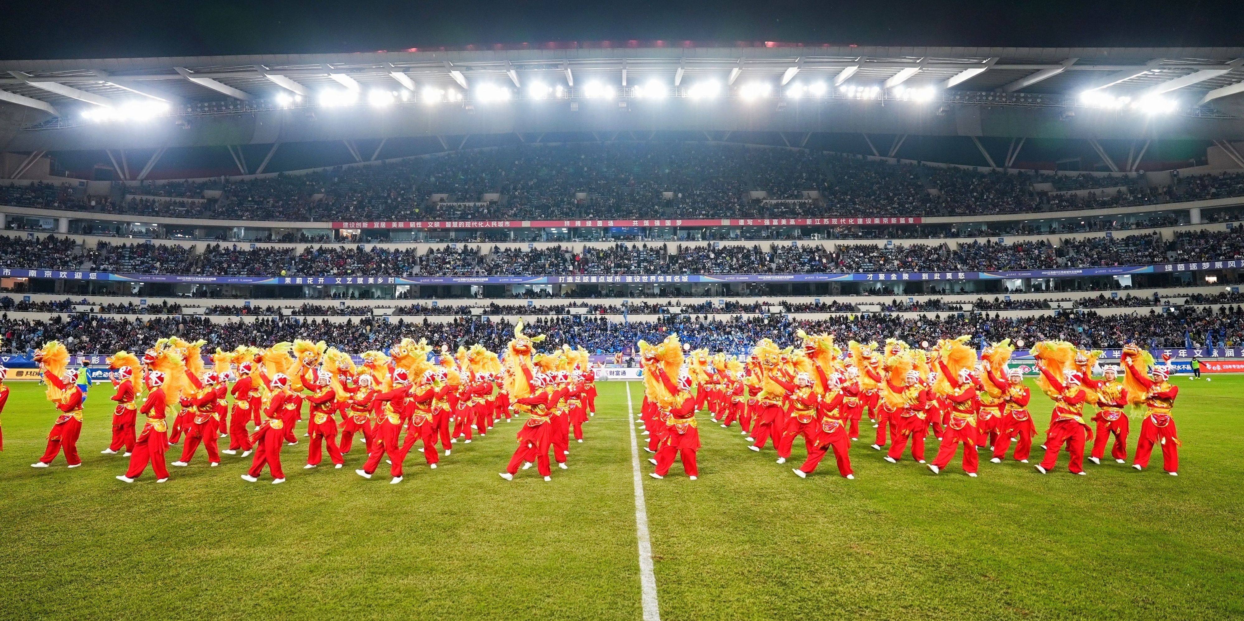 团队还通过手狮俱乐部建设,培养专项人才,在做好传承的基础上不断创新江浦手狮的表达形式,积极参加校内外展示展演。团队通过俱乐部持续不断的培养高水平爱好者的技艺能力,先后有近300名高级爱好者成为江浦手狮表演人才,他们经常服务于bv伟德国际1946重要大型体育赛事和地方政府开展的主题文化展示活动中,受到广泛的好评。2025年,手狮俱乐部的同学共演出了28场,其中“苏超”半决赛中场表演和江苏省第二届城市足球对抗赛的开场表演,就有超过12万名观众欣赏了这项具有170多年的地方文化瑰宝。