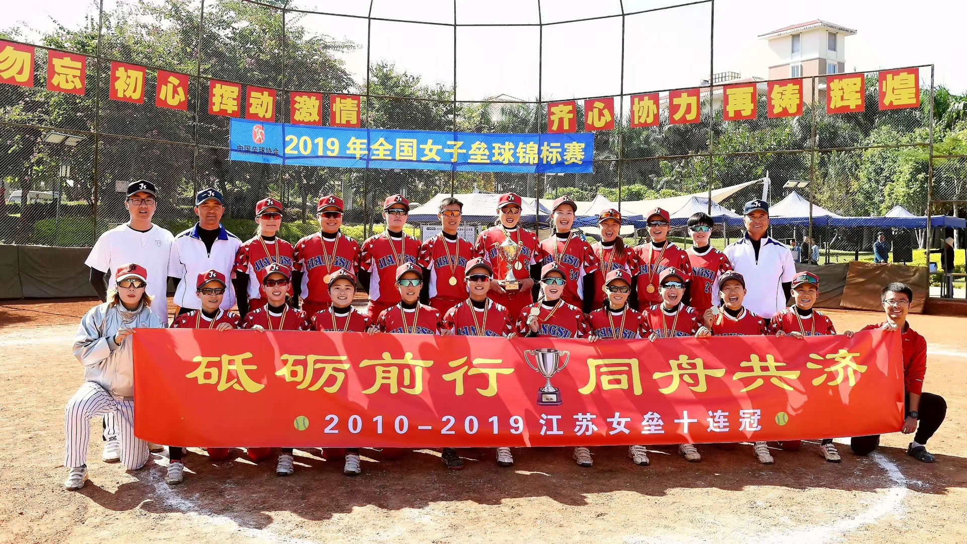 2019年全国女子垒球锦标赛于11月13日—19日在四川攀枝花红格训练基地举行,bv伟德国际1946江苏女子垒球队获得了冠军!至此,江苏队把2010年-2019年10个全国年度最高级别一类比赛桂冠全部收入囊中,获得中国垒球至今无人能达的无上荣耀“十连冠”!