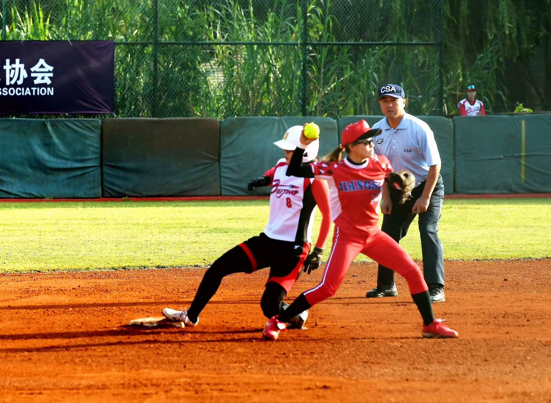 本次比赛共有10支队伍参赛,江苏,辽宁,河南,上海,北京,四川,广东,天津,甘肃,陕西。赛制为分组单循环加双配寄制,江苏,甘肃,天津,北京,四川分为同一组进行小组赛,四天小组赛里江苏队均轻松拿下,以小组第一的身份进入配寄,与B组排名第二的上海队争夺第一场配寄的胜利,最终以3:2拿下,接着又与去年锦标赛第三的河南队进行第二场配寄的博弈,江苏队选择先攻方,开局就豪夺8分,将对方主力投手打下场,接着第二局第三局分别获得6分和3分,以总比分17:0轻松拿下,直接进入冠亚军决赛,与辽宁、上海、四川、河南四支队伍的赢家进行冠军争夺!最终江苏与河南在决赛碰面,并以4:1夺冠!