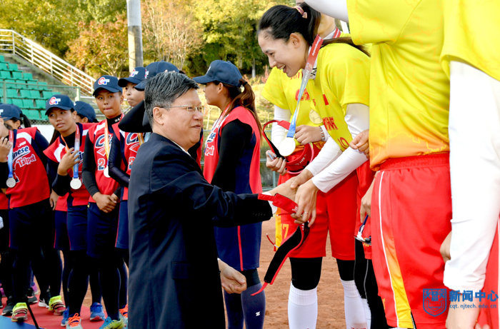 在闭幕式上,组委会举行了隆重的颁奖仪式。亚洲垒球联合会副主席施国维、秘书长赛丽林,中国垒球联合会秘书长张萱,校党委书记芮鸿岩、副书记崔益虎、副校长赵志宏等有关领导为各代表队和运动员颁发了奖牌和证书。