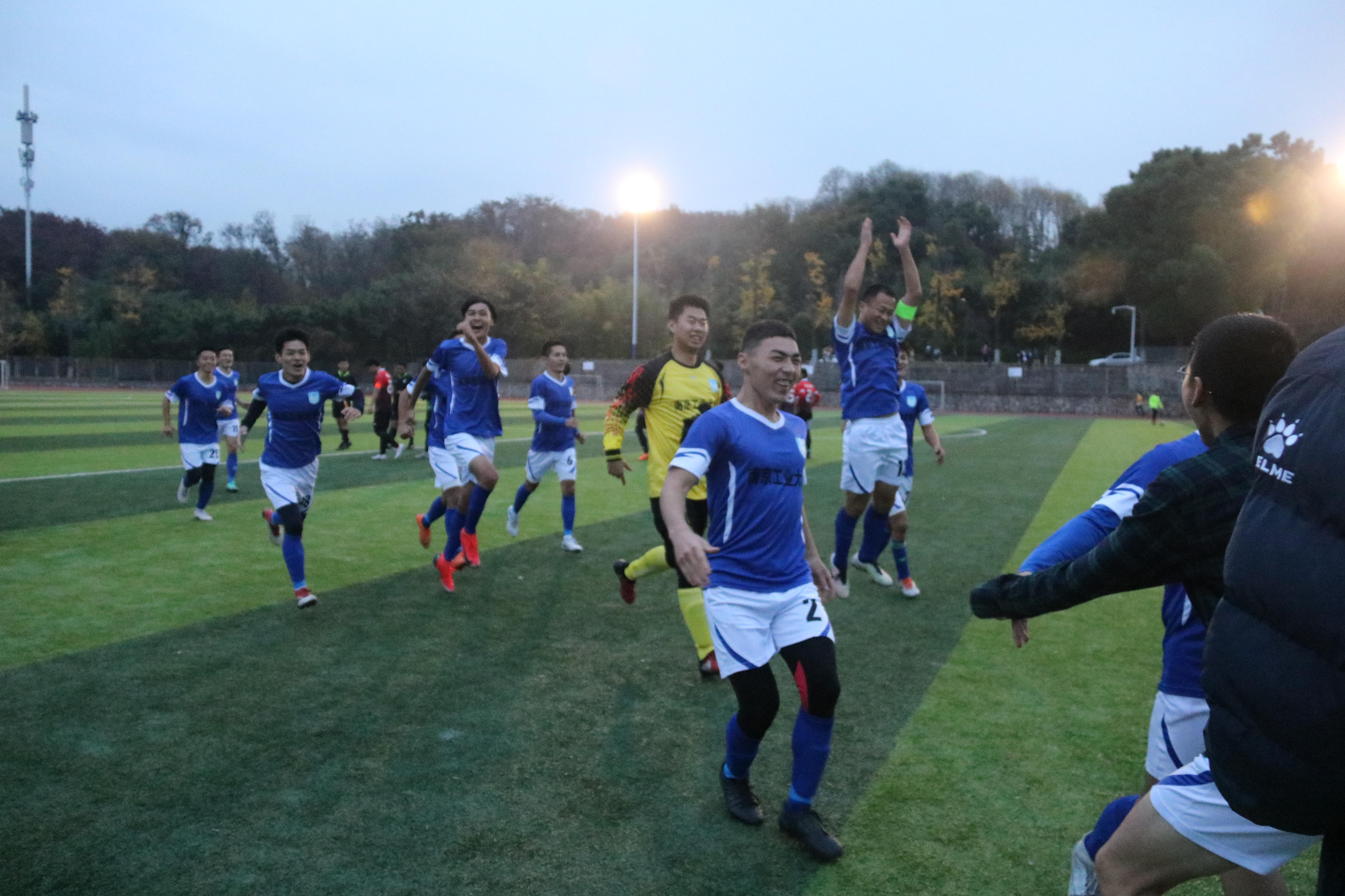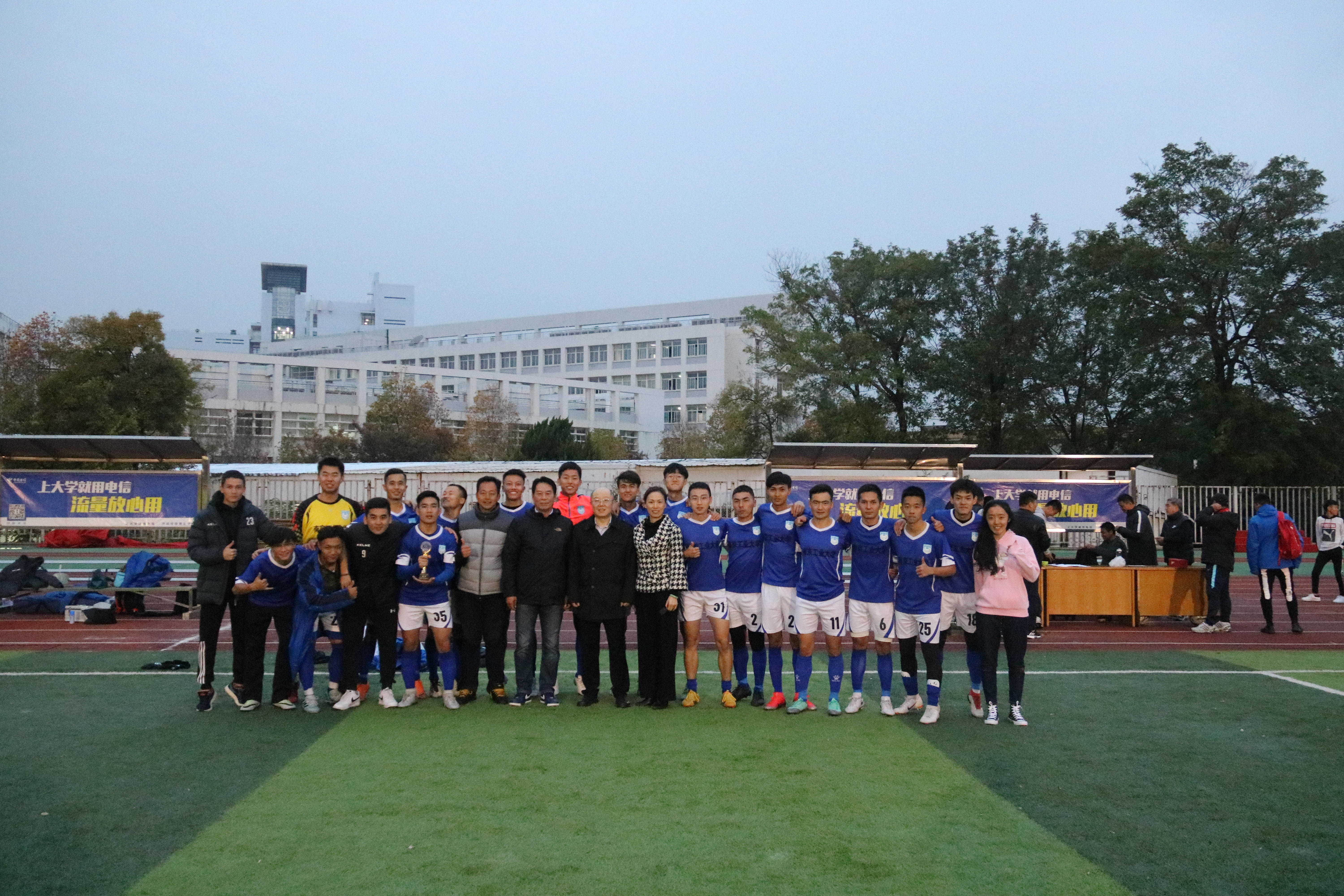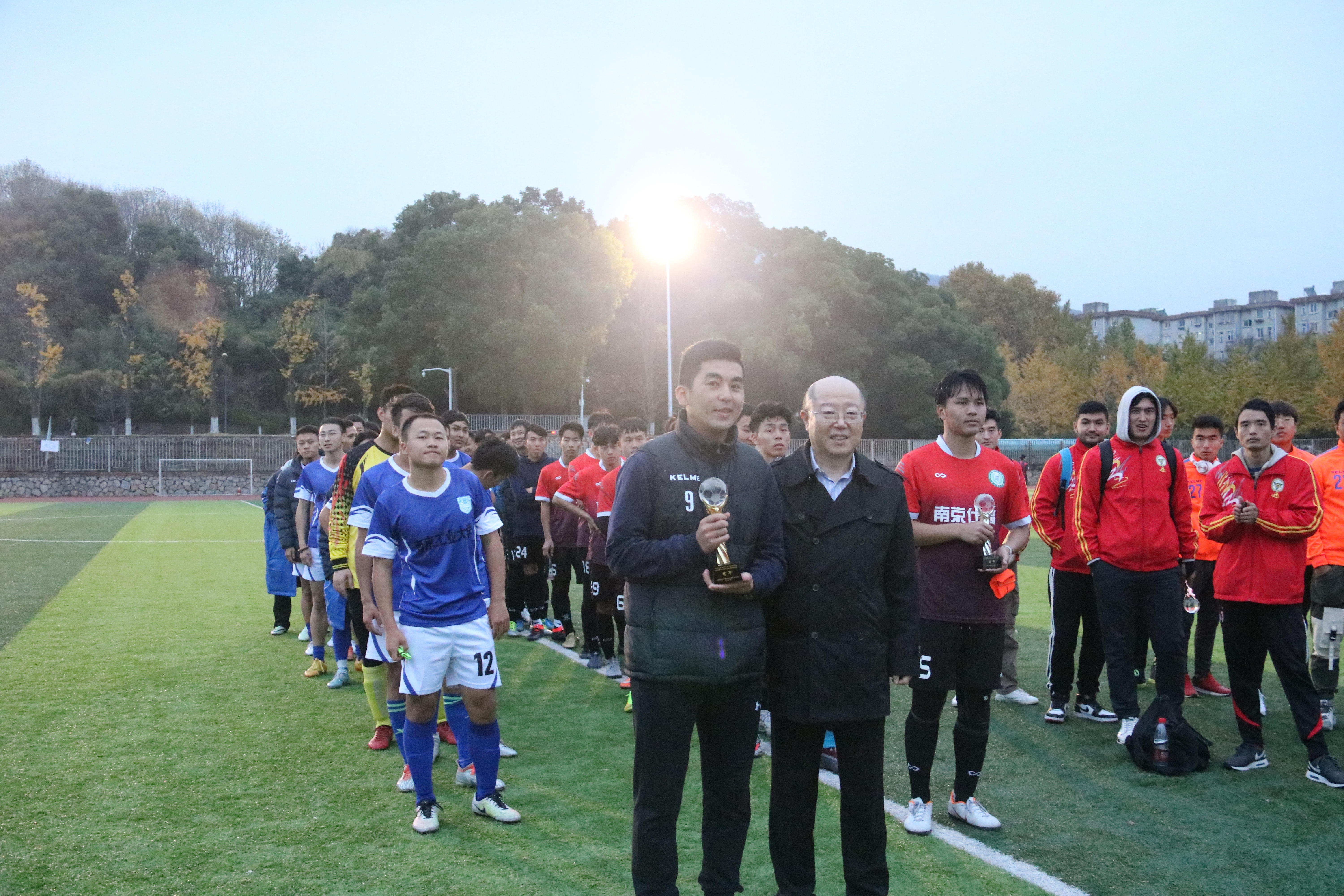 在今年的“省长杯”赛场上,球队在领队陈晓霞副主任、主教练成一祥老师的带领下一路高歌猛进披荆斩棘,小组赛8:0战胜淮阴师范大学,点球2:0击败东南大学2:0力克南京信息工程大学,顺利拿到小组第一出线;半决赛1:0战胜江苏大学,连续第三次进入省比赛决赛,决赛的对手依然是南京林业大学。常规时间内两队互交白卷,比赛进入点球大战。随着队员肉孜在第八轮将点球罚进,校足球队成功加冕冠军,并将以“江苏冠军”的身份连续第二年入围CUFA大足联赛东南赛区决赛圈。