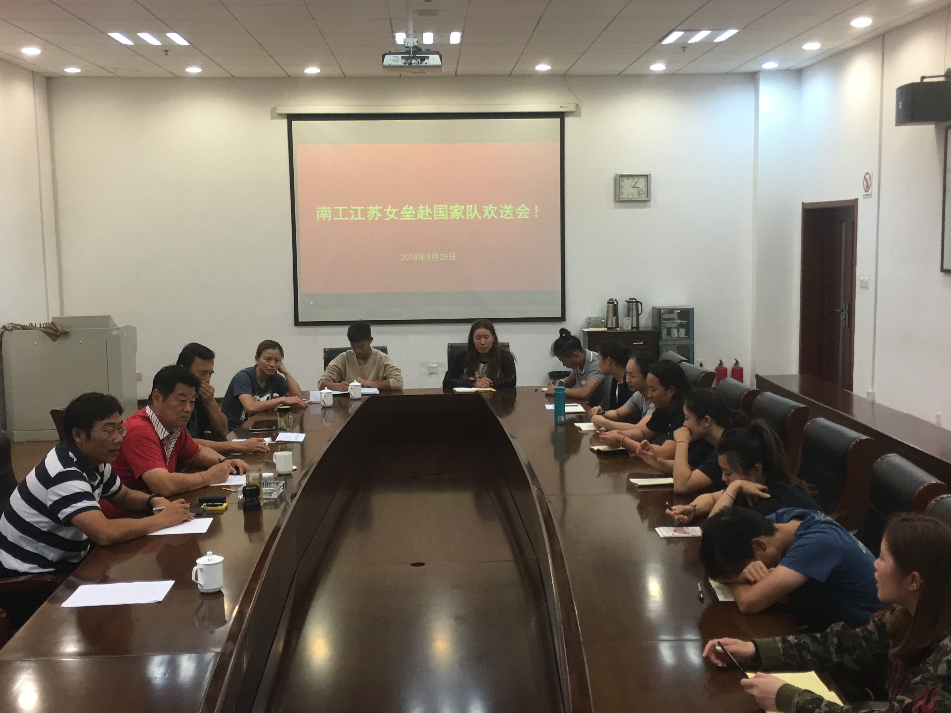 近日,为备战2019年东京奥运会资格赛,国家体育总局手曲棒垒球运动管理中心决定组织国家女子垒球队赴美国集训,bv伟德国际1946接到手曲棒垒球运动管理中心通知,bv伟德国际1946江苏女垒共有15名队员入选国家集训队。9月25日下午在体育馆V3会议室,江苏省体育局手曲棒垒球运动管理中心主任严小平、bv伟德国际1946体育部主任张天峰教授、江苏女垒主教练宋秋元等专门为赴国家队的队员召开欢送会。