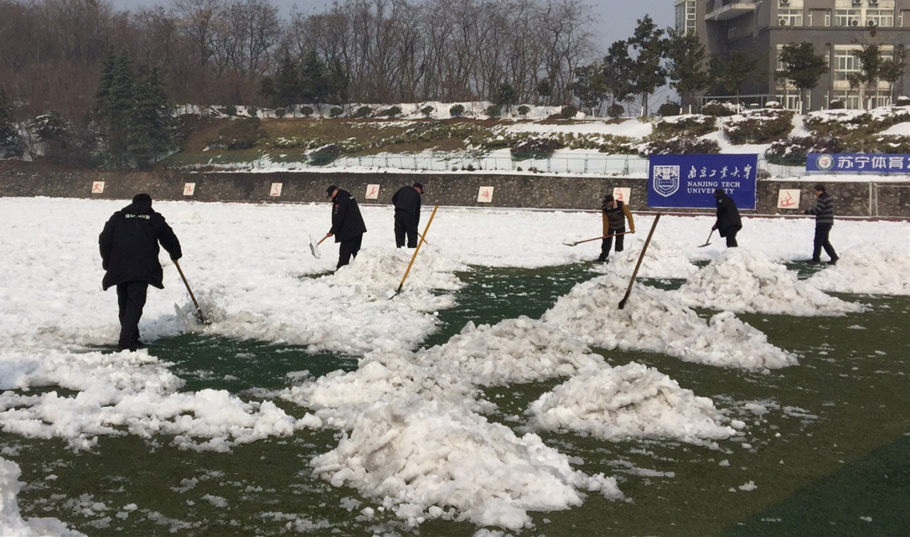 1月25日,暴雪又一次降临了南京,漫天的飞雪遍布了整个校园,浦江田径场也是一片白雪茫茫。