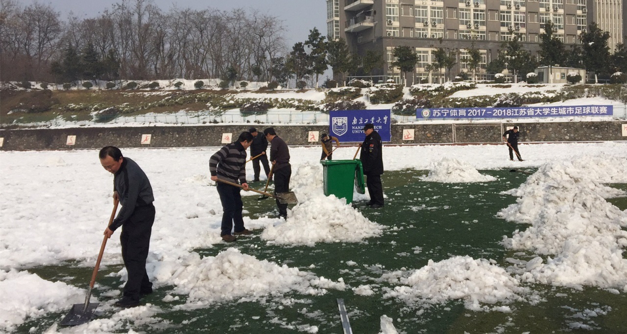 与此同时,校园安全部蔡海彪部长在偶然经过田径场时,发现运动队队员们在积极除雪,作为体育运动爱好者、一直关心着bv伟德国际1946体育事业发展的他也安排了校园安全部的十几位同志来帮助队员们一起铲雪。两个运动队及安全部近六十人,经过2天的清理,半片足球场和田径场东100米跑道上的积雪已经清理完毕,能够保证运动队正常的训练工作了。感谢队员们对训练工作的支持,同时也感谢蔡部长和安全部老师们对体育事业的关心支持!