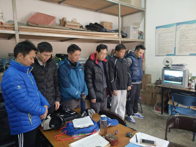 12月13日10时,体育部组织部分老师在体育馆VIP3会议室集中收看了南京大屠杀死难者国家公祭仪式直播。部分上课的老师也利用课间休息时间,自发在各自场馆的教师休息室收听收看。