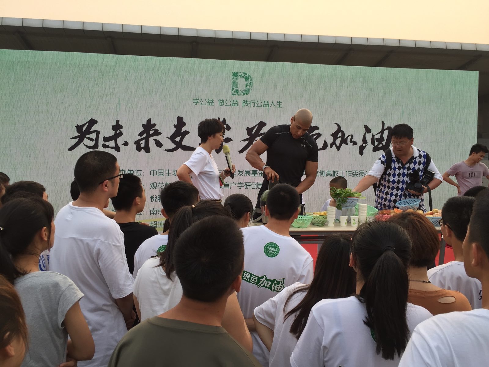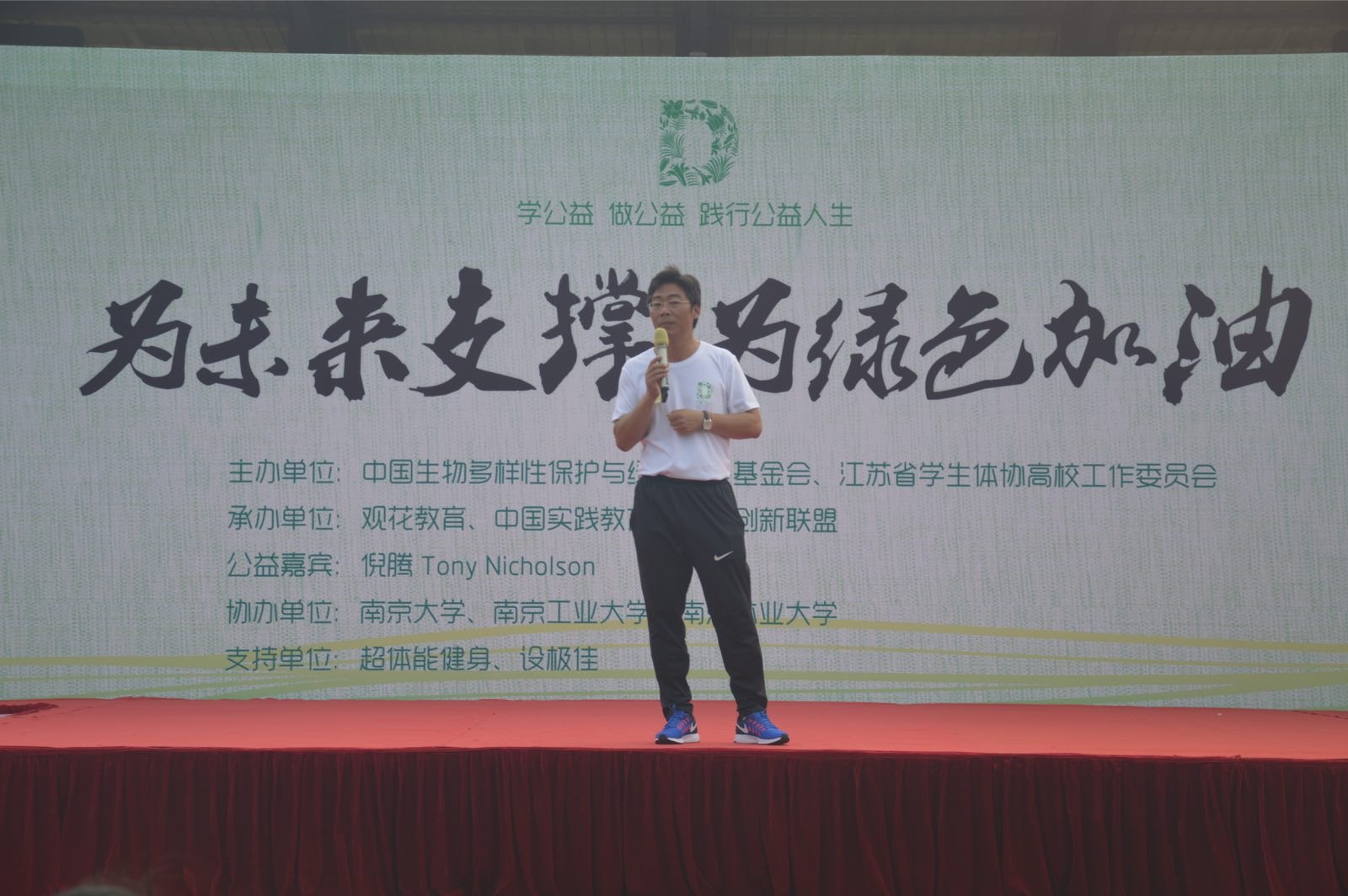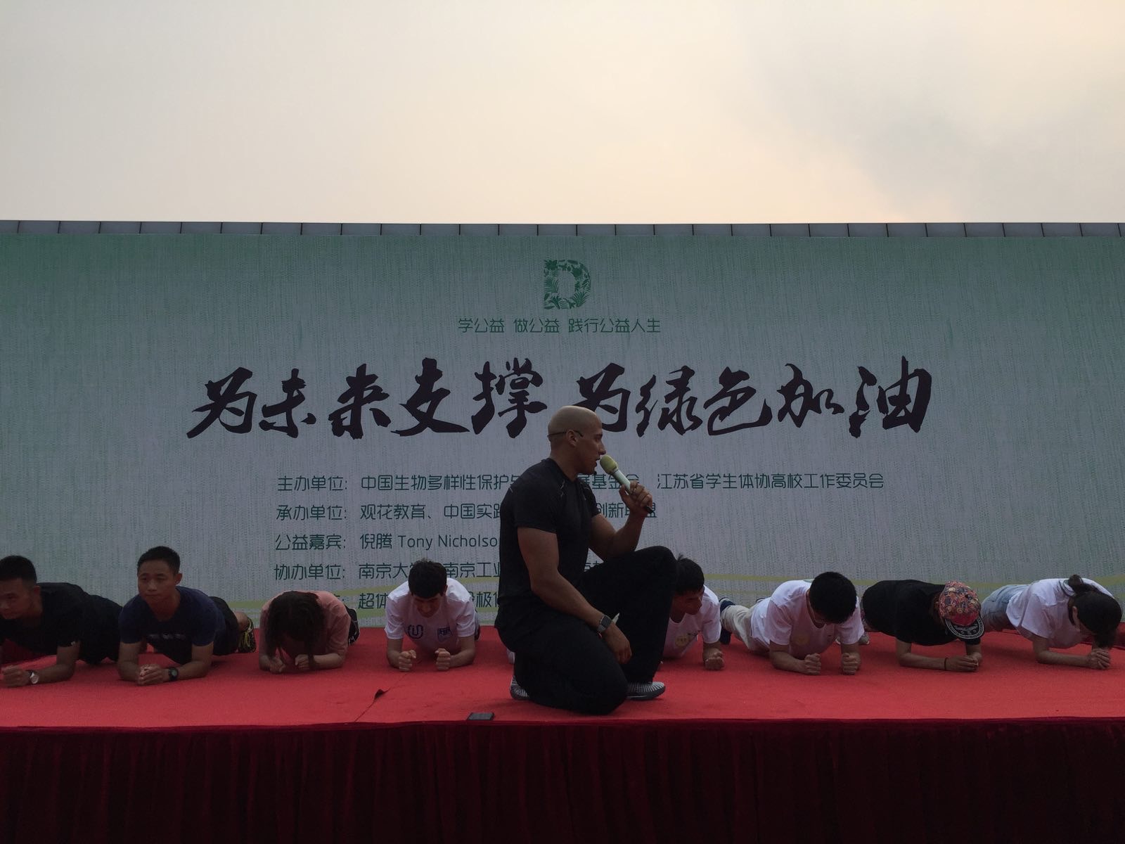 由中国生物多样性与绿色发展基金会(以下简称”中国绿发会”)和江苏省学生体协高校工作委员会共同主办的“为未来支撑、为绿色加油”中国大学生公益活动6月2号下午在南京大学举行。此项公益活动旨在让更多的大学生了解健康和健身的关系,帮助更多的大学生开启健康生活模式。活动邀请了被誉为中国顶级教练、中国最具人气的健康生活顾问、知名健身专家的Tony Nickolson(中文名:倪腾),现场为大学生指导如何正确地进行体能训练。来自南京大学、东南大学、南京师范大学、南京邮电大学、南京财经大学、bv伟德国际1946等多所高校的数百名大学生参加了此次活动。