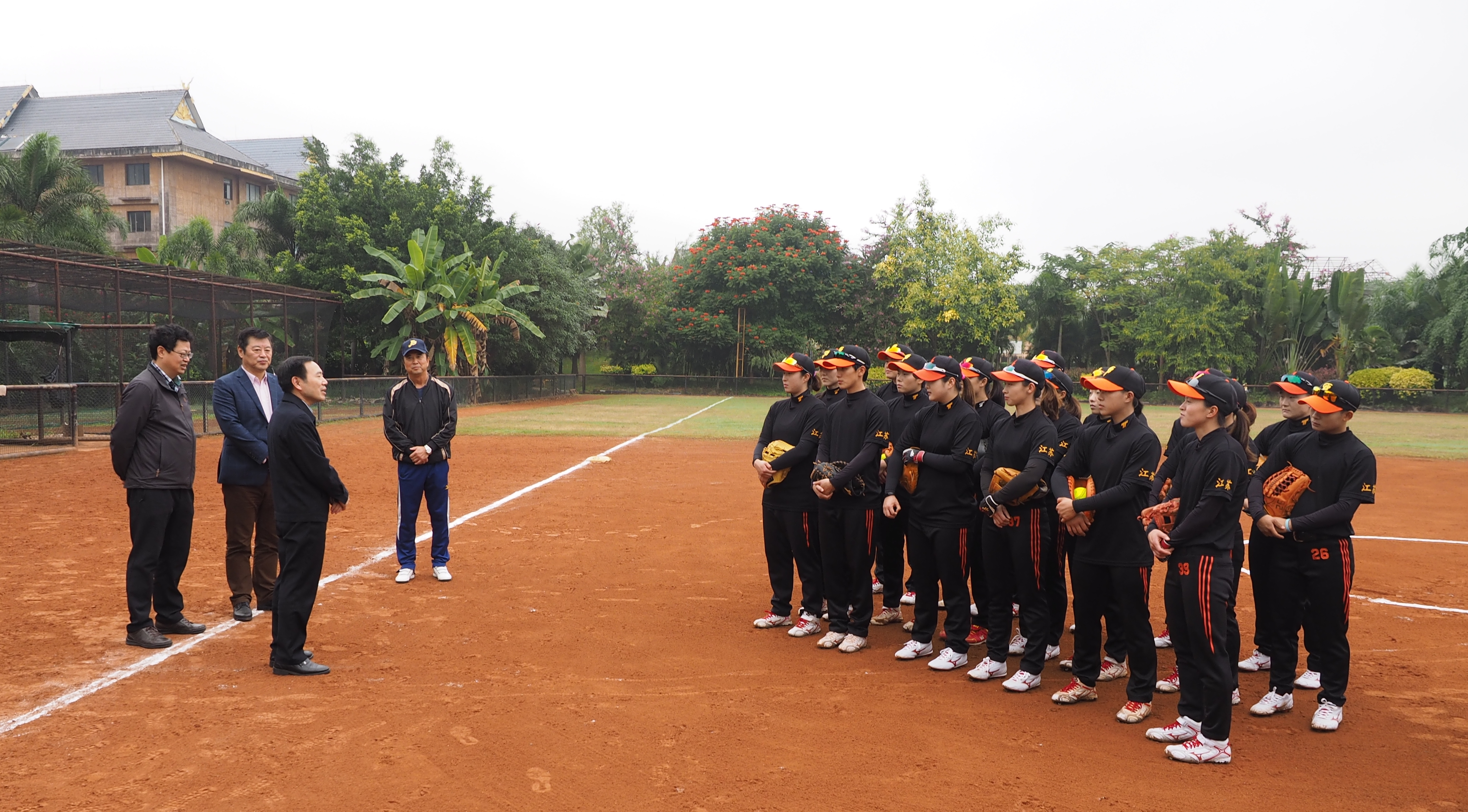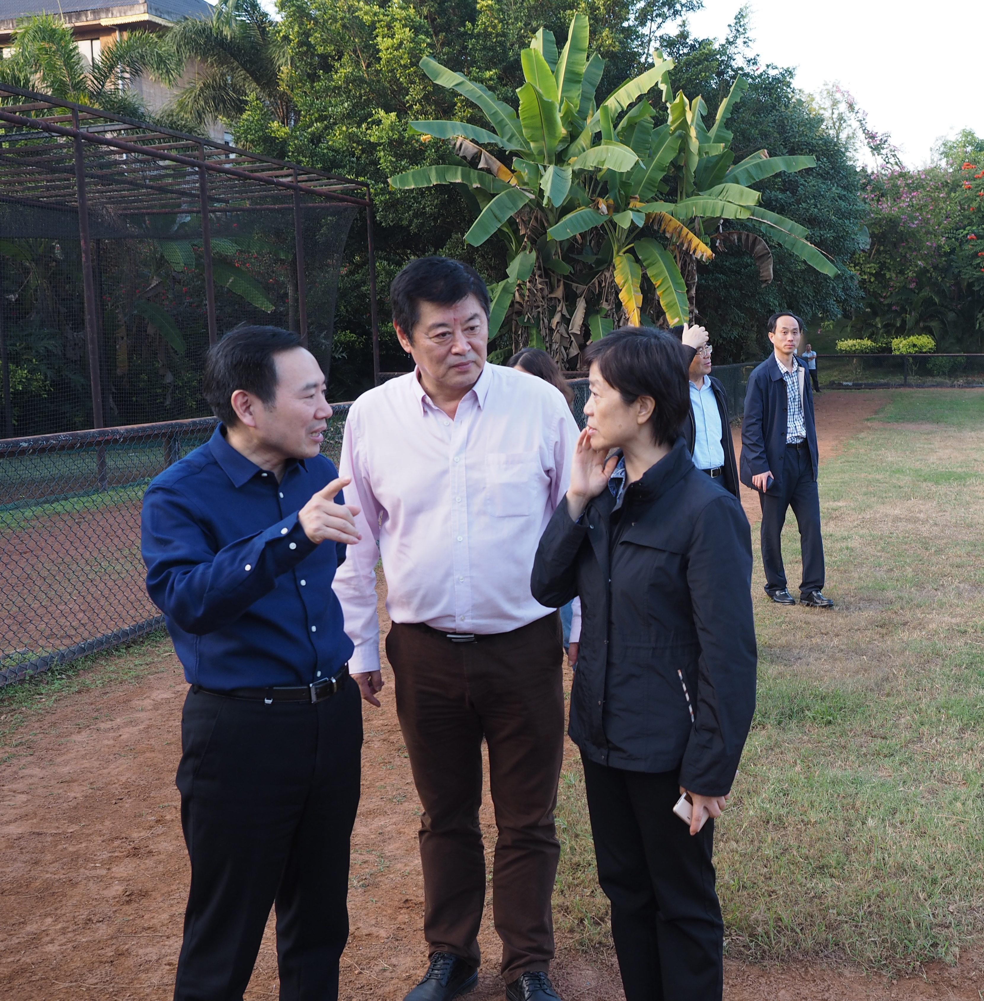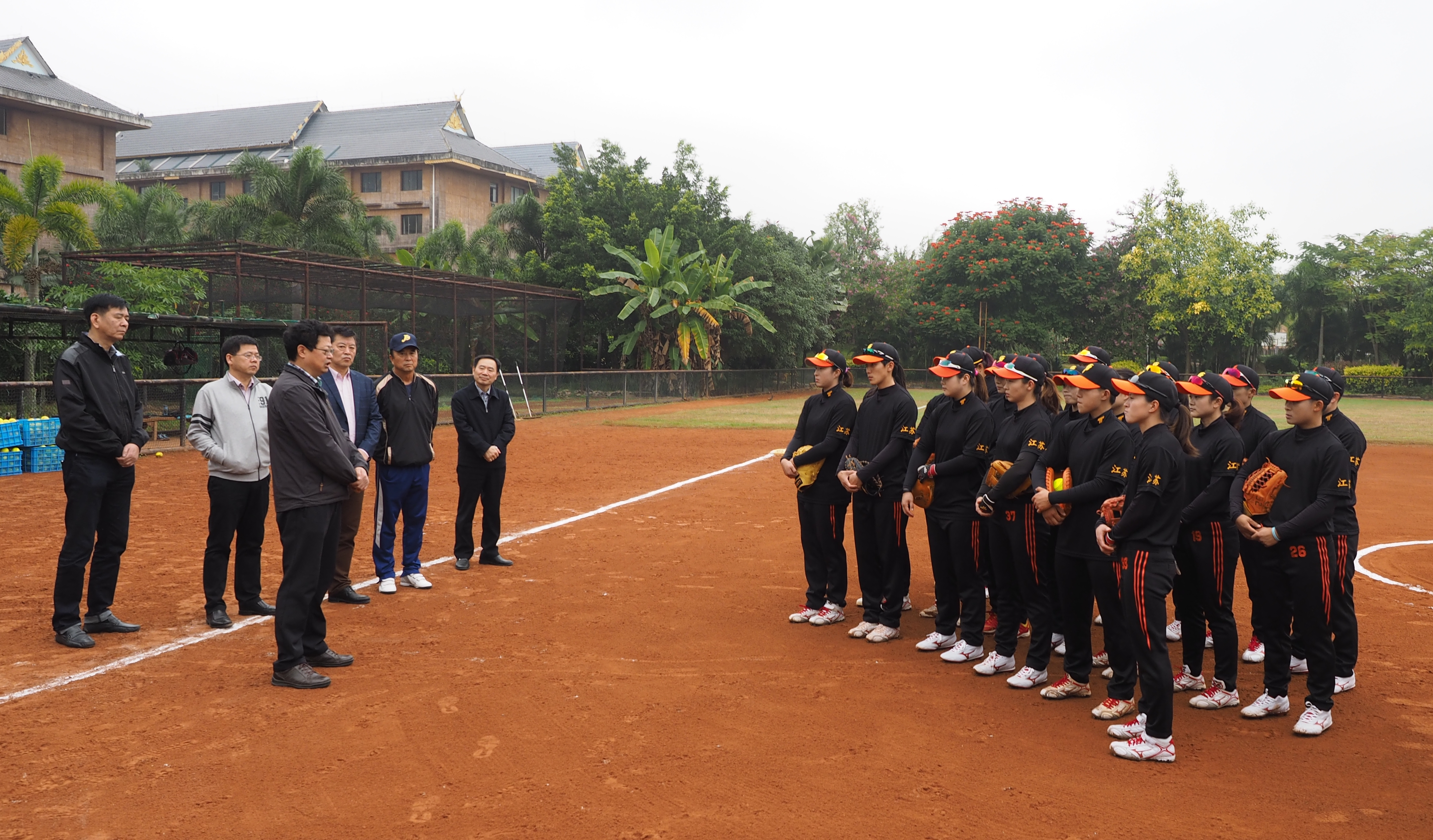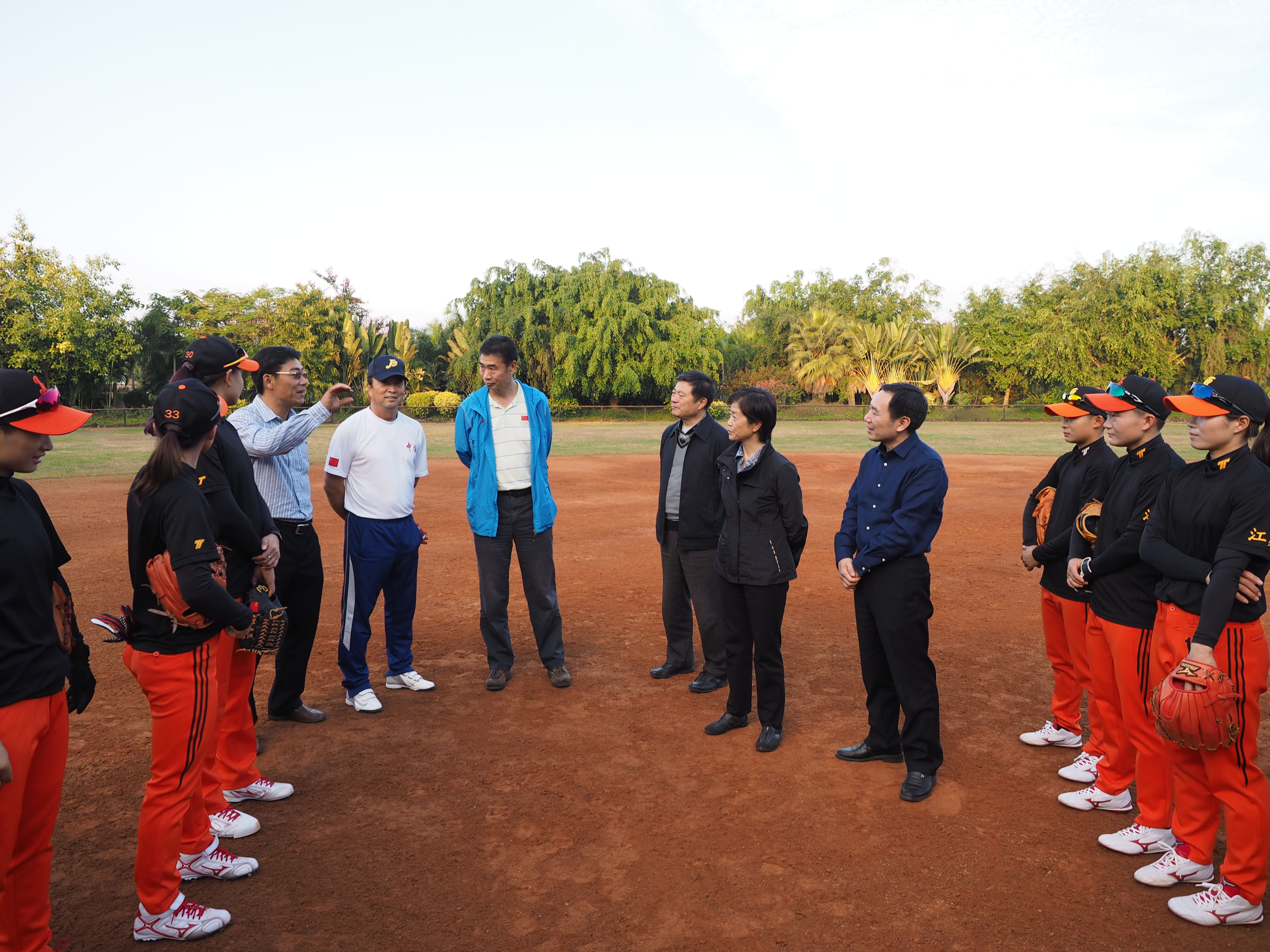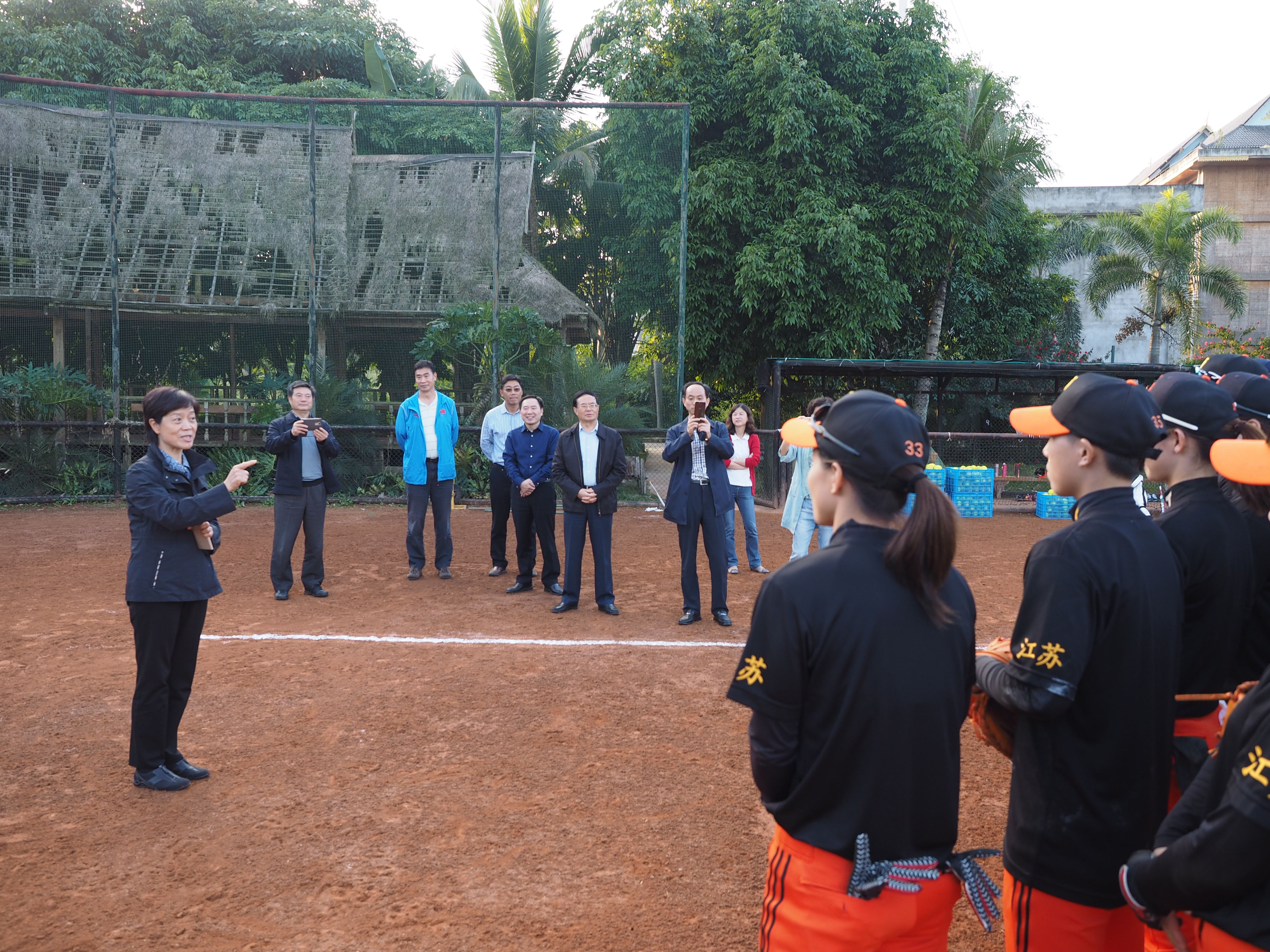 12月8日下午,江苏省政协副主席许津荣在省政协副秘书长程玉松、省政协医卫体育委员会主任李一宁、副主任殷宝林、省体育局局长陈刚、副局长王伟中、办公室主任李松、手曲棒垒球管理中心主任严小平的陪同下,远赴云南看望为备战全国第十三届运动会转训西双版纳训练基地的bv伟德国际1946江苏女垒全体运动员、教练员和工作人员。bv伟德国际1946副校长崔益虎、体育部主任张天峰全程参加了活动。