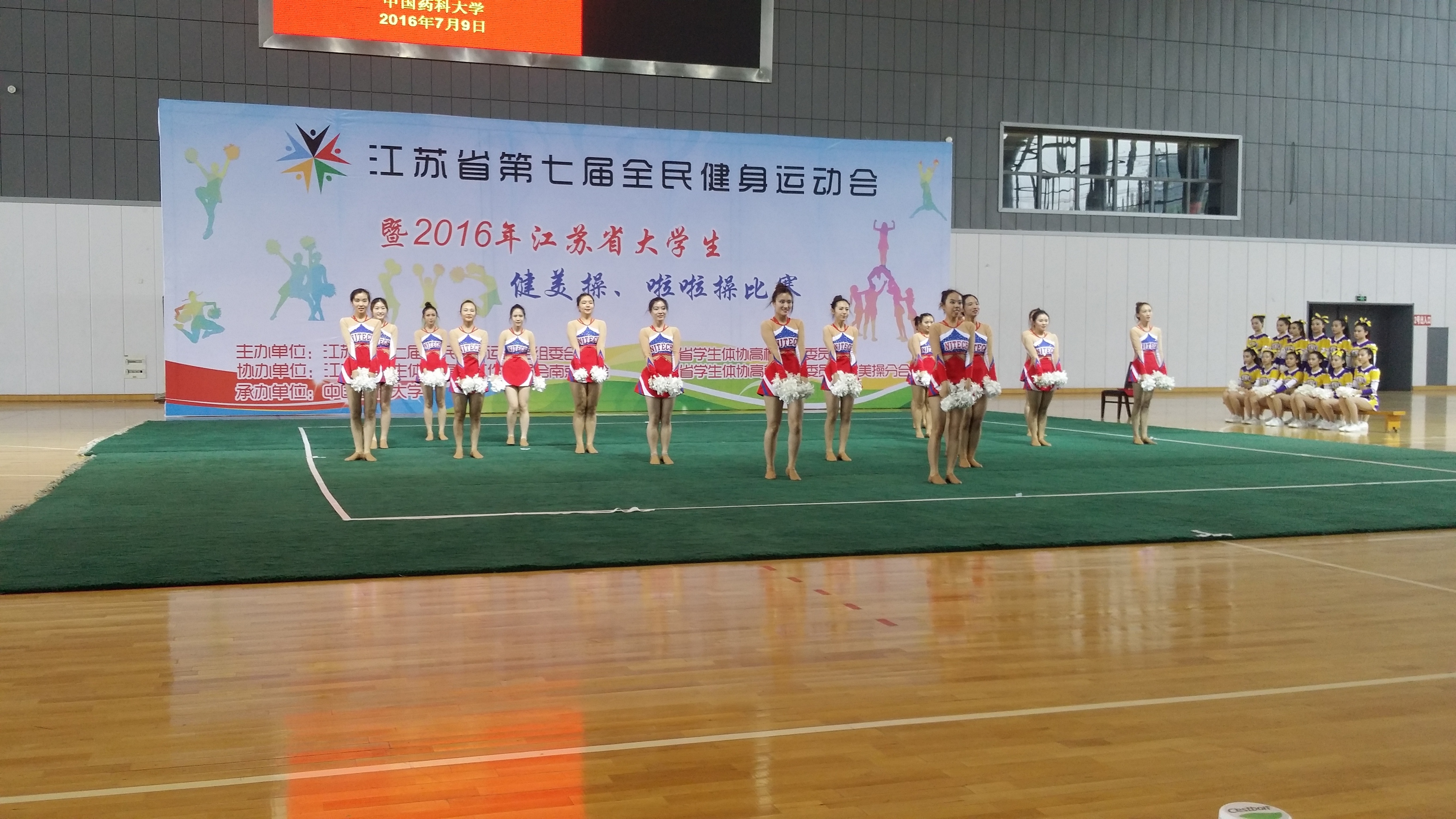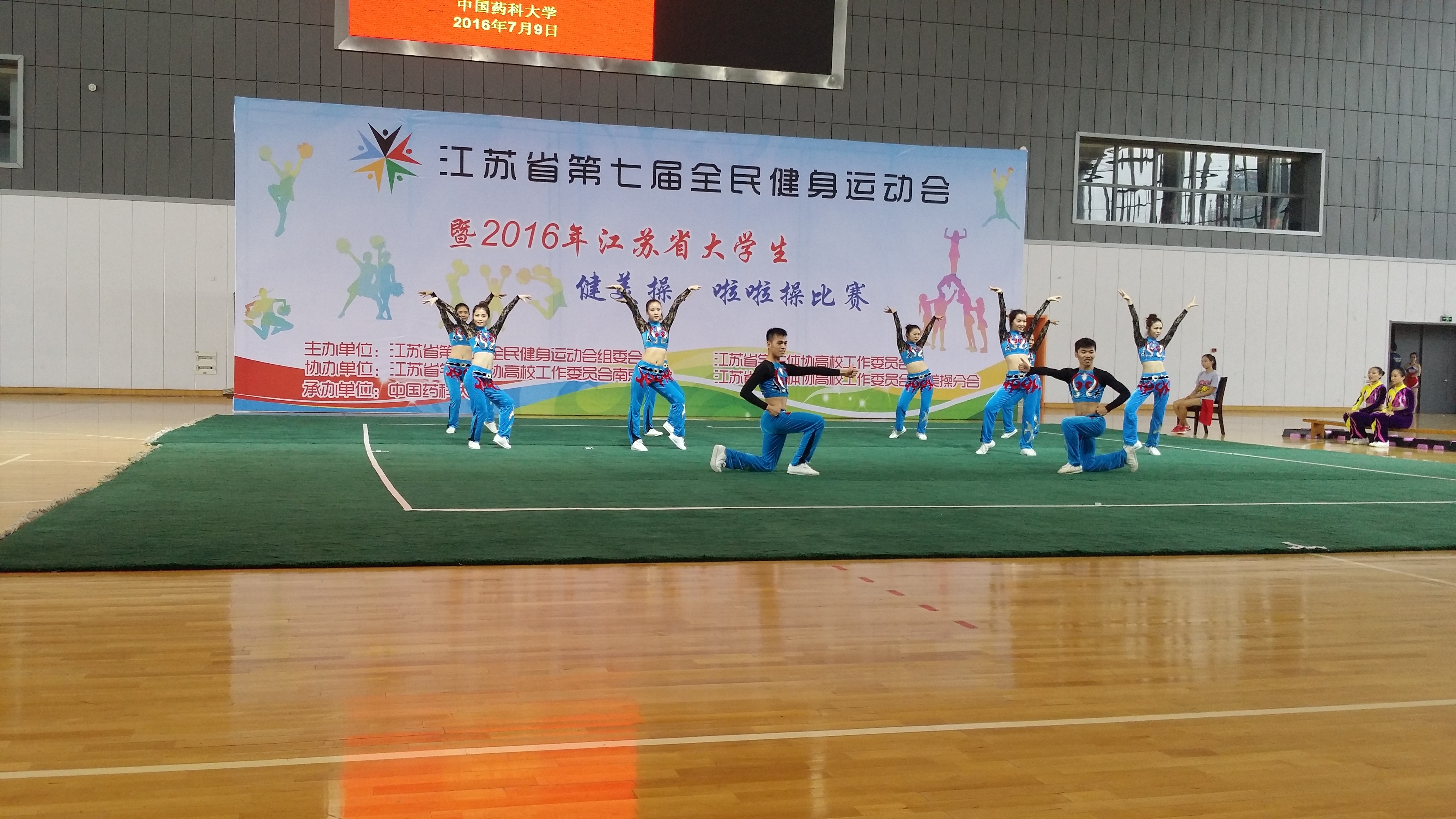 78日至9日,江苏省第七届全名健身运动会暨2016年江苏省大学生健美操、啦啦操比赛在中国药科大学江宁分校举行,bv伟德国际1946健美操队在王佳玥、薛敏老师的带领下,和兄弟院校展开了激烈的角逐,最终,bv伟德国际1946健美操队喜获有氧舞蹈第一名、大众健身操第一、男子单人操第一名,花球啦啦操规定套路第二名,花球自编动作第二名的好成绩。