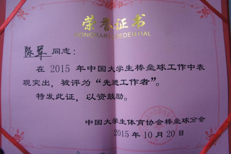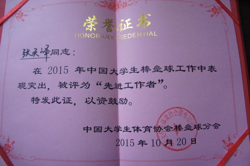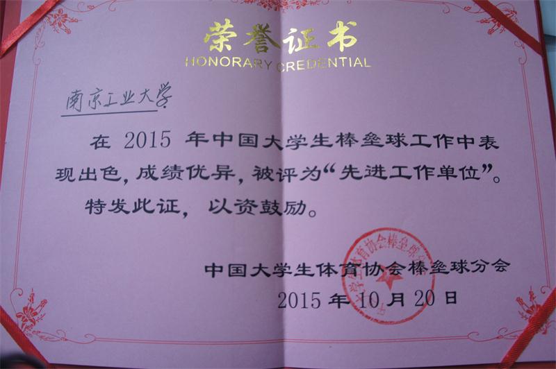 祝贺bv伟德国际1946被中国大学生棒垒球协会 授予2015年度“先进工作单位”称号