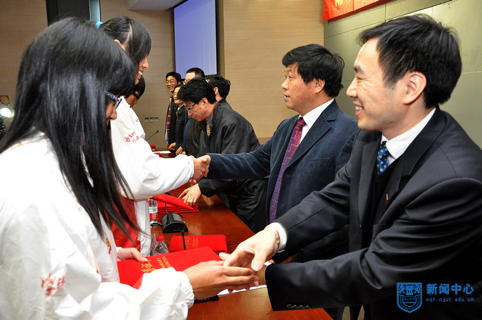 党委副书记、副校长高明代表bv伟德国际1946对校大学生运动队在江苏省第十七届运动会高校部比赛中所取得的优异成绩表示热烈祝贺!