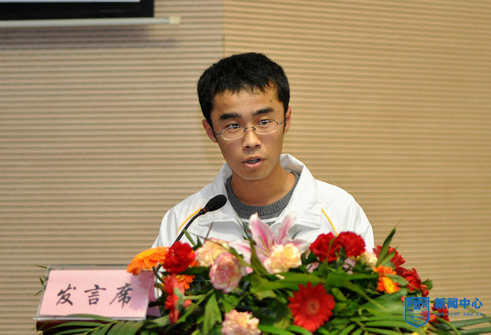 校大学生棒球队队员顾路顺作为运动员代表,汇报了作为一名普通生进入运动队以来所经历的感受和体验,2010级高水平篮球运动员朱良同学作为新生代表表达了一定要向高年级的同学学习,继续发扬体育精神,为校园体育文化和竞技体育再创新成绩而不懈努力的决心。