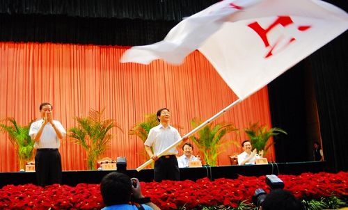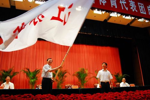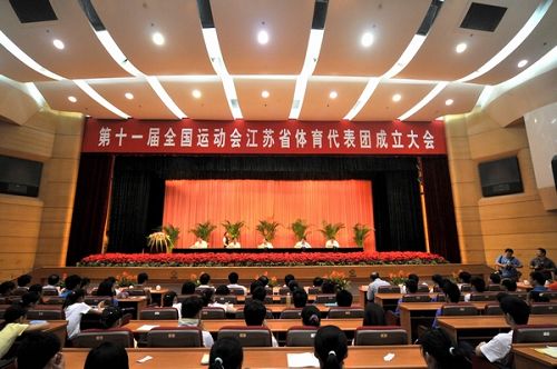 8月10日,第十一届全运会江苏体育代表团在南京成立。省委副书记、省长罗志军出席成立大会并向副省长、代表团团长曹卫星授江苏体育代表团团旗,省委常委、宣传部长杨新力出席会议并讲话。