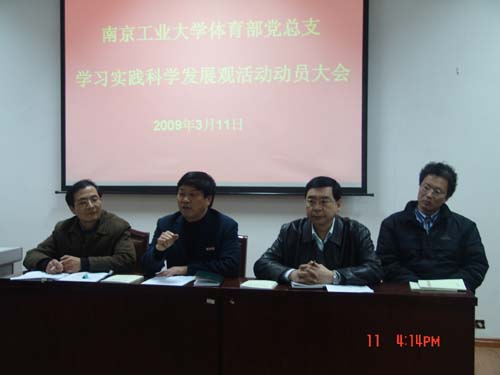体育部于3月11日下午,按照bv伟德国际1946党委的统一部署和要求,在继续教育学院报告厅召开了全体党员大会,就深入学习实践科学发展观活动开展进行了动员和部署,校党委副书记、副校长高明教授出席了会议,并在会上作了重要讲话,对体育部如何组织开展好这项活动再次提出了具体的目标要求。会议由体育部党总支书记陈建华主持。