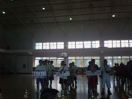20087197272008全国化工高校体协大学生“三对三”篮球赛在沈阳化工大学举行,为了备战这次比赛,在教练佘海文老师的带领下队员们放弃暑假休息时间,战高温,不怕苦、不怕累,在十多天集训中,参加的有任马龙、常瑞敏、许智超、万跃、贾苏等五名队员,个个队员都训练积极,发扬吃苦耐劳的精神,在训练期间,队员出现了伤病情况,但在教练的关心和帮助下,克服了病痛,保持了比较好的精神状态。由于这次比赛是全国化工高校的33比赛,因此在训练上,教练很有针对性的在中距离投篮和罚球上下了很大工夫,从练习比赛中来看,效果很是不错。比赛临近,在去沈阳的旅途中,佘海文教练和陆宏凯老师对队员很关心,比赛期间,张天峰副主任也来为我们队员加油鼓劲,这样使参赛队员的信心大争啊!在张主任和佘导带领下,队员们“过五关,斩六将”,最后顶住压力,力克CBA强队郑州大学篮球队,荣获2008全国化工高校体协学生“三对三”篮球比赛冠军,为此我们感到光荣,同样为工大感到光荣,当然我们不能骄傲,在这次比赛中,队员表示还是有许多不足,到新学期要认真地加以总结,希望以后在张老师和佘导带领下能做得更好,打出更好的成绩。