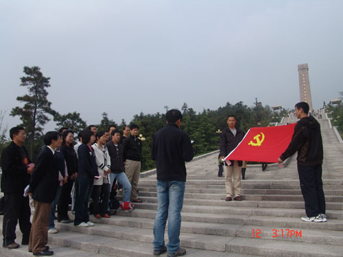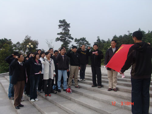 体育部党总支于4月11日下午至12日下午组织全体教职工党员赴茅山新四军纪念馆、金坛博物馆、华罗庚纪念馆、金坛体育馆等地参观学习。11日下午一行首先来到了茅山新四军纪念馆,举行了以“重温入党誓词,争当实践先锋”为主题的重温入党宣誓与参观调研活动。体育部党总支书记陈建华讲话,明确提出了开展本次活动的目的和意义。他指出:组织大家参观茅山新四军纪念馆,是因为在新四军纪念馆里,有翔实的史料,生动地再现了新四军和苏南人民抗日斗争的历史情景,使每一位党员被抗日英雄的英勇斗争的气概和不怕牺牲、前仆后继的精神所感染。缅怀抗日先烈,旨在进行一次深刻的革命传统教育。在鲜红的党旗和烈士塑像前,重温入党誓言,再次向党表达党员跟随党的愿望和决心。通过参观学习,也可以看到党员自身存在的不足,倍加努力,积极发挥每一个党员的先锋模范作用,发扬艰苦奋斗、坚韧不拔、团结战斗的革命精神,努力践行“三个代表”重要思想,树立科学发展观,牢记“两个务必”,提高工作水平。陈建华书记在讲话中还特别号召全体党员,在即将于5月16日至17日举办第六届校运动会上,努力工作,带头坚守岗位,履行好职责,为运动会的圆满举办做出自己应有的努力。根据bv伟德国际1946领导提出的今年在全校师生中开展读书学习活动要求,希望全体党员积极地响应bv伟德国际1946党委的号召,按照在“工作中学习和在学习中工作”的要求,自觉地利用业余时间加强理论学习,不断提高自身的综合素质,党总支要进行学习交流活动,评选出先进个人。接着,体育部年轻教师、新党员代表佘海文同志发了言,他感谢组织和同志们多年来对他的培养和教育,深刻地感受到了入党以后,作为预备党员,参加党组织的外出教育活动,心情更加的激动与兴奋,并深知作为一名党员肩负的责任更大,认识到只有用自己的实际行动来履行好入党誓词,才能成为一名真正的共产党员。为此他还向党组织保证,今后要更加努力学习、努力工作,做到关心集体、关心他人、尽心尽力地为体育部各项事业的发展作出自己的贡献。随后,全体党员在体育部党总支委员李加奎同志的带领下,庄严地举起右手,进行了入党宣誓,表达了争做一名合格党员的决心!宣誓完毕,一起参观了新四军纪念馆陈列室。