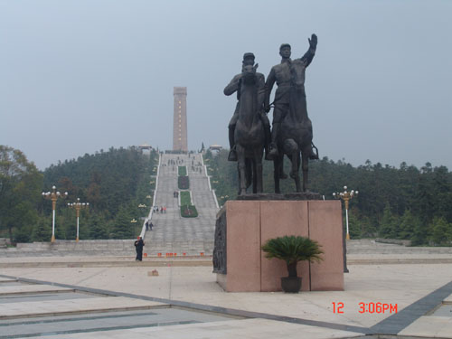 茅山新四军纪念馆作为全国新四军纪念馆之一,占地一万六千多平方米,步入新四军纪念馆广场,展现在我们面前的是,周边雪松环绕,绿茵似毯,平整的草坛之上分别陈列着当年新四军在茅山抗战期间使用和缴获的各类飞机、大炮等大型武器。进入气势雄伟的主体展馆内,屹立着陈毅同志身着戎装,手持望远镜的古铜色全身塑像,在陈毅同塑像旁,鲜红的党旗使每一位党员热血沸腾,展出的文物、图片2000余件,分为“苏南人民奋起抗击日本侵略军”、“茅山抗日根据地的开辟”、“茅山新四军东进北上”、“苏南抗日根据地的艰苦坚持”、“苏南人民夺取抗日斗争的胜利”等五大部分,生动再现了陈毅、粟裕等老一辈无产阶级革命家的光辉业绩和光辉形象,真实地反映了以茅山为中心的苏南抗日根据地的光辉历程,生动再现了新四军和苏南人民抗日斗争的历史风貌。看着展出的各种文物、资料,感受着新四军浴血奋战的悲壮场面,仿佛又回到了那个战火纷飞的年代。大家时而为革命前辈们在对敌斗争中的聪明才智叫好,时而为那些因遭受百般迫害而牺牲的革命志士扼腕痛惜。大家仔细参观了中国共产党领导的新四军挺进茅山后,靠胜利的战斗,模范的群众纪律和广泛的统一战线,团结各阶层群众,广泛抗日游击战争,组建地方党和各种抗日团体,发动和组织广大人民投入抗日斗争洪流,在茅山取得立足点,开辟茅山根据地的史实。当看到新四军挺进江南的先遣支队在粟裕同志指挥下,卫岗初战告捷,陈毅同志喜闻赋诗一首时,大家不禁齐声咏读:“弯弓射日到江南,终夜喧呼敌胆寒。镇江城下初遭遇,脱手斩得小楼兰。”一个个都被老一辈无产阶级革命家的胆识和气概深深震撼。随后,瞻仰了屹立于茅山脚下的苏南抗日胜利纪念碑。纪念碑高达36米,四周石级石栏,苍松翠柏。在抗战胜利纪念碑前,党员们领略到“碑下放鞭炮,空中吹军号”的奇特现象,在嘹亮回旋的军号中大家追思和怀念着那些为挽救民族危亡、在硝烟炮火中英勇献身的烈士们,深深领会到“坚持以热爱祖国为荣、以危害祖国为耻,以服务人民为荣、以背离人民为耻……”的历史涵义。