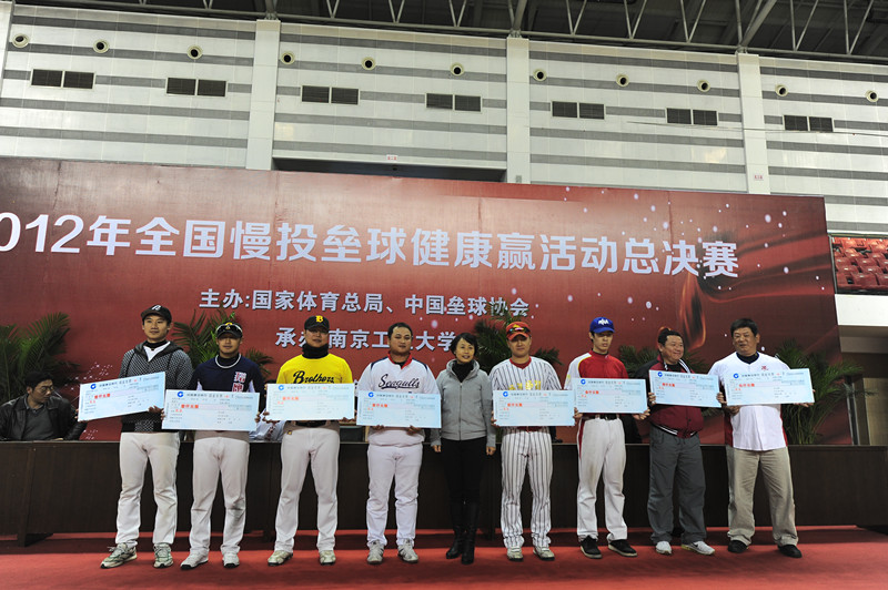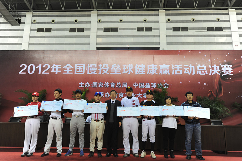 11月11日下午,由国家体育总局群众体育司指导,国家体育总局手曲棒垒球运动管理中心、中国垒球协会和教育部中国大学生体育协会棒垒球分会主办,bv伟德国际1946承办的2012年全国慢投垒球健康赢活动总决赛在江浦校区体育馆画上圆满句号。国家体育总局手曲棒垒球运动管理中心副主任谈莺,中国垒球协会副主席、bv伟德国际1946副校长朱跃钊,国家体育总局手曲棒垒球运动管理中心垒球部部长、中国垒球协会秘书长杨旭,中国大学生体育协会棒垒球分会秘书长徐勇,bv伟德国际1946体育部主任张天峰,昆山台湾同胞投资企业协会副会长郑钦铭,达阵体育发展有限公司董事长梁功斌,中山·一动体育运动服装有限公司林爱冬等领导及嘉宾出席了闭幕式。参加闭幕式的还有来自全国24支代表队的名运动员、教练员和裁判员。仪式由中国垒球协会副秘书长王彤主持。