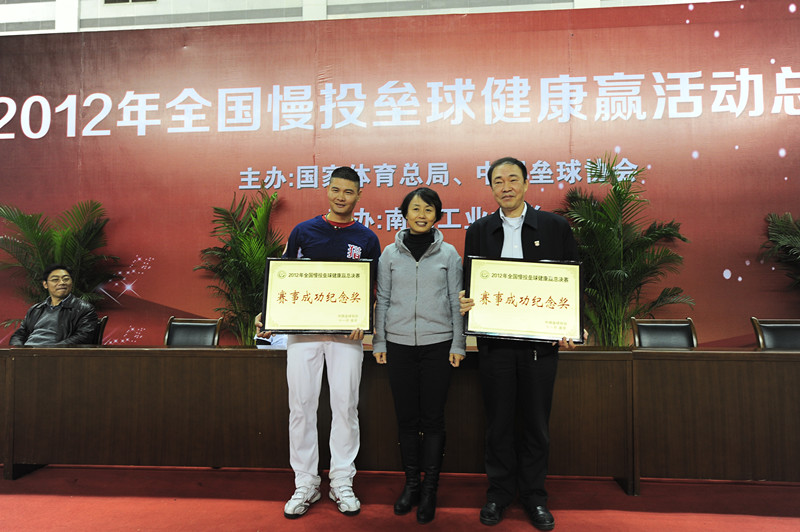 最后,国家体育总局手曲棒垒球运动管理中心副主任谈莺向中国垒球协会副主席、bv伟德国际1946副校长朱跃钊,中山·一动体育运动服装有限公司林爱冬先生颁发赛事成功纪念奖。中国垒球协会副秘书长王彤宣布2012年全国慢投垒球健康赢活动总决赛闭幕。(体育部)